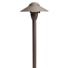 This low-voltage landscape light has come from Kichler Lighting. This traditional light has a dome shade and features a textured architectural bronze finish. Its polished but strong silhouette is ideal for creating safe and stylish lighting in your outdoor areas. With dimensions of 6 inches wide by 21 inches high, the light has the appropriate length to cast more focused downlight in smaller garden areas and beds with lower plantings. Place several of these lights in your pathways to display your landscaping and expand your living areas at night.