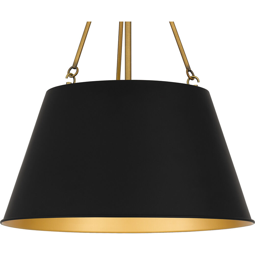 Quoizel Lighting's Aberdale Pendant features a tapered metal drum shade that creates a moody lighting moment. This pendant features a Matte Black metal shade, as well as gold accents that add both warmth and sheen. Add this fixture to your reading nook or stairwell for just a touch of understated drama.