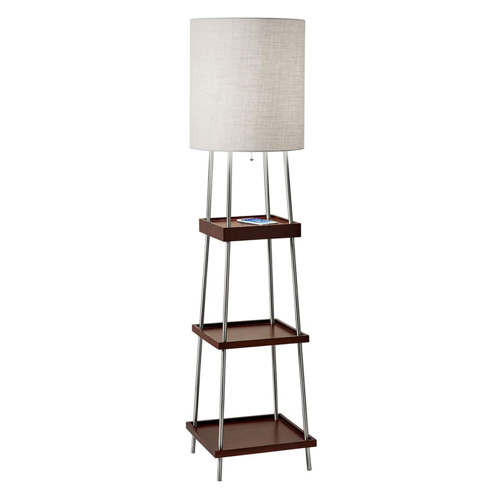 The Henry AdessoCharge Shelf Floor Lamp is a multi-functional piece of furniture and lighting that includes a wireless charging pad with Qi inductive charging technology integrated into the top shelf. Many smartphones (list below) have Qi technology built in, so just place your phone on the pad and it will charge right up. No cords, no mess. It`s that easy! All AdessoCharge product is Qi certified by the Wireless Power Consortium. Please visit https://www.wirelesspowerconsortium.com/products/search/ to see a list of Qi certified products. Our product has been tested and verified to be safe and in compliance with the Qi standard. The AdessoCharge pad supports 5W charging on contact with the charging pad, which gets your phone from 0% to 100% in just 4-5 hours, depending on your phone model. A USB is located on the base and can charge up a second device simultaneously. AdessoCharge is unique in that you can use the AdessoCharge pad, the USB and the light all at the same time with maximum efficiency of all three. With all of this added functionality, you also get three beautiful walnut wooden storage shelves. A sleek AdessoCharge pad design that is flush with the surrounding area provides an attractive charging station with easy access to your phone while its charging. Just plug in the lamp and the charger will work. The light on the lamp does not even need to be turned on. This wireless charging pad will charge your phone through most materials, do you do not even need to remove your case! Only metal will hinder the function of the charging pad to charge through the case. If your smartphone doesn`t support Qi wireless charging, you will need to purchase a Qi compatible case, which is sold through a variety of retail channels. Or you can also charge your smartphone with the USB port that is also included in the lamp base. Compatible with Apple iPhone 8 / 8 plus / X / Galaxy Note 8 / S8 / S8 plus / S7 / S7 edge / S6 / S6 edge / S6 edge+ / Nexus 4 / 5 / 6 / 7 / LG G3/ Microsoft Lumia 1520, 1020, 930, 929, 928, 920