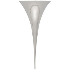 Aerin's cone-shaped Alina Tail Sconce by Visual Comfort is an ideal fixture for highlighting an accent wall or simply for dramatic effect. The Aline contains one 60W maximum candelabra base C11 light bulb, which is concealed within its metal body. This pushes the Alina's light upwards, creating a wall wash or grazing effect. The Alina also features a Bronze finish and has a trapezoid-shaped backplate.