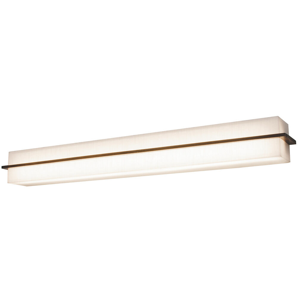 Solid wood accent bars grace this contemporary LED Vanity. Features LumaFuse laminated fabric/acrylic shade that is durable and easy to clean. White bottom and top acrylic diffuser disperses the light. Available in two finishes and three sizes.