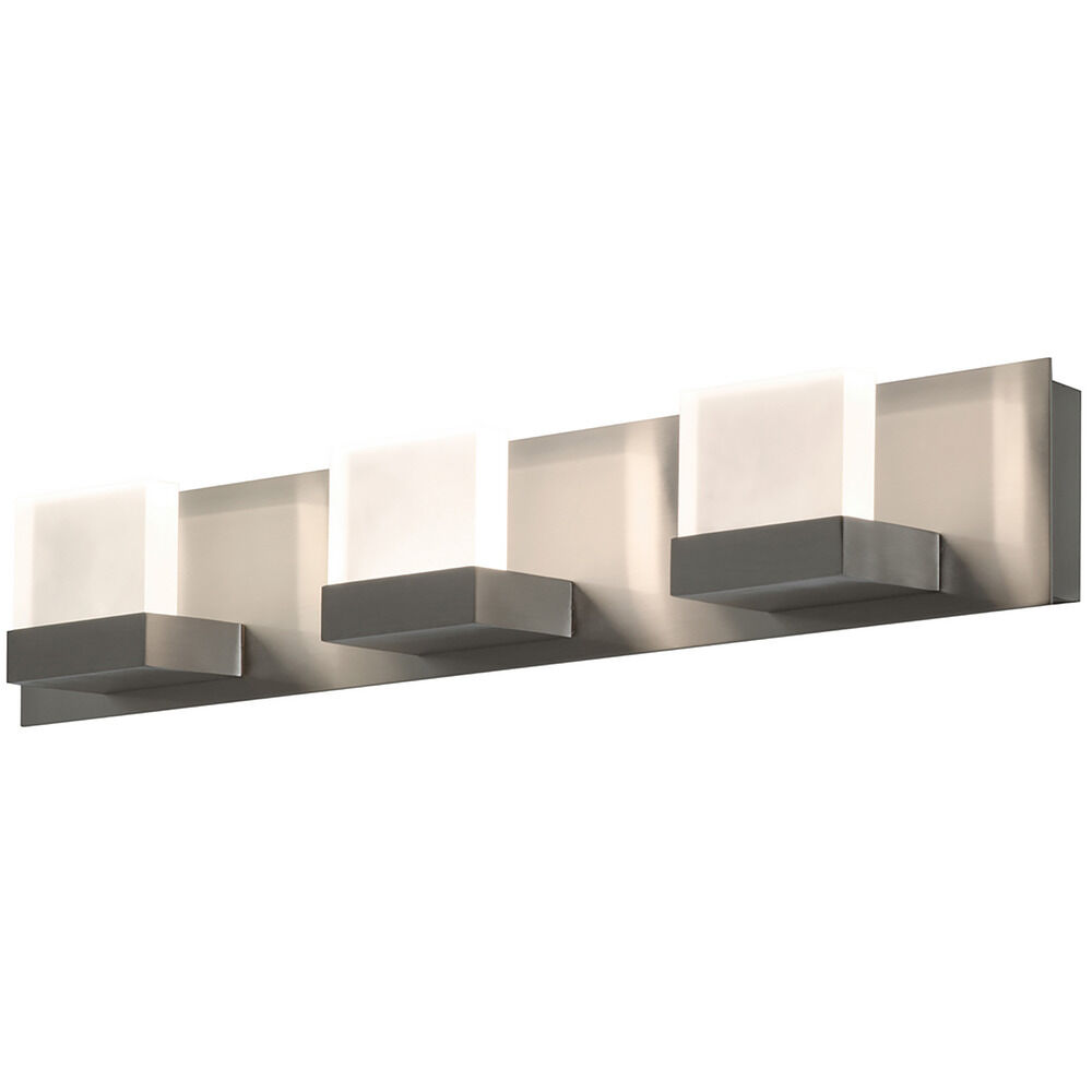 Contemporary LED vanity with metal housing. Edge-lit frosted acrylic diffusers provide an even light disbursement. Available in 3 or 4 light models.