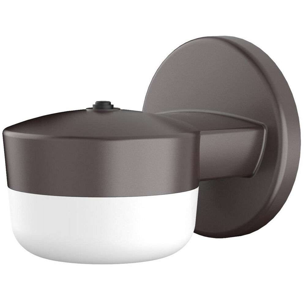 Outdoor LED wall light. Polycarbonate housing and diffuser. Dusk-to dawn photocell. Ideal for costal applications (IP65). Three color selectable CCT switch. Available in three finishes.