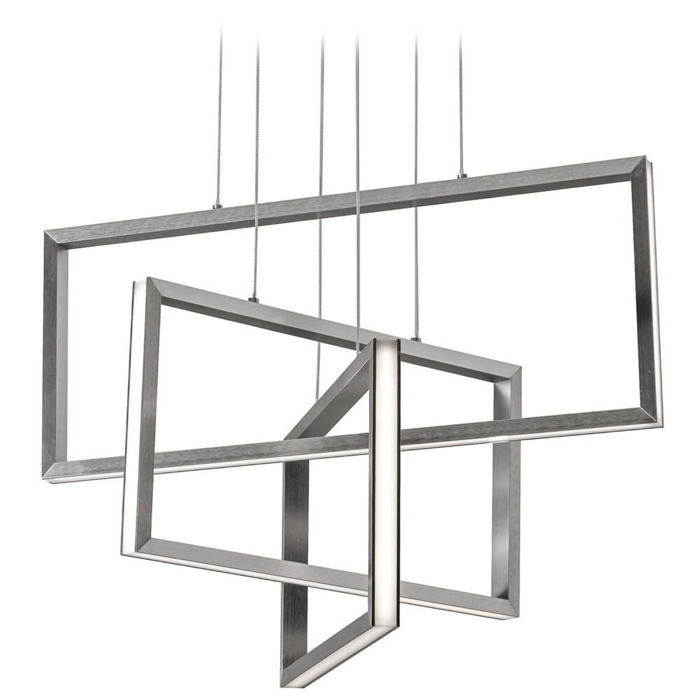 Layered Contemporary LED pendant with extruded aluminum housing and 3 sided illumination . Suspended by a 9 ft. adjustable cable. Available in three sizes and three finishes.