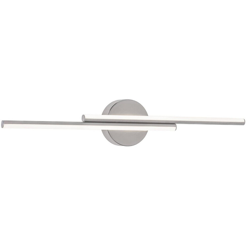 Modern LED vanity with off set light bars. White acrylic diffusers. Vertical or horizontal mount. Available in two lengths and three finishes.