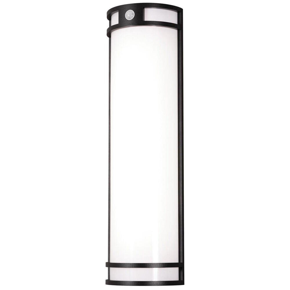 Outdoor LED sconce Die-cast aluminum construction. White acrylic diffuser. Dusk-to-dawn operation. Minimum starting temp -4? F/-20? C. Available in two finishes and three sizes.