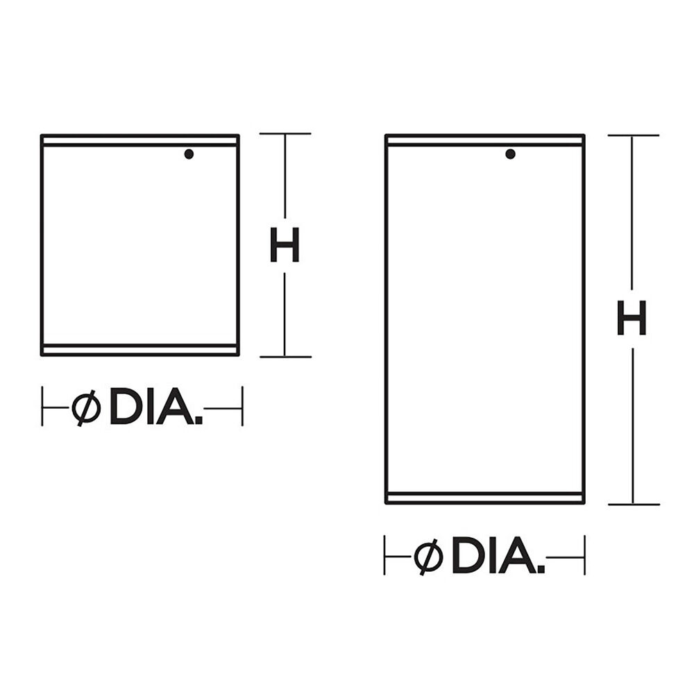 Outdoor wide cylinder LED ceiling mount. Aluminum construction. Frosted glass diffuser. Three adjustable CCT switch. Available in two lengths and two finishes.