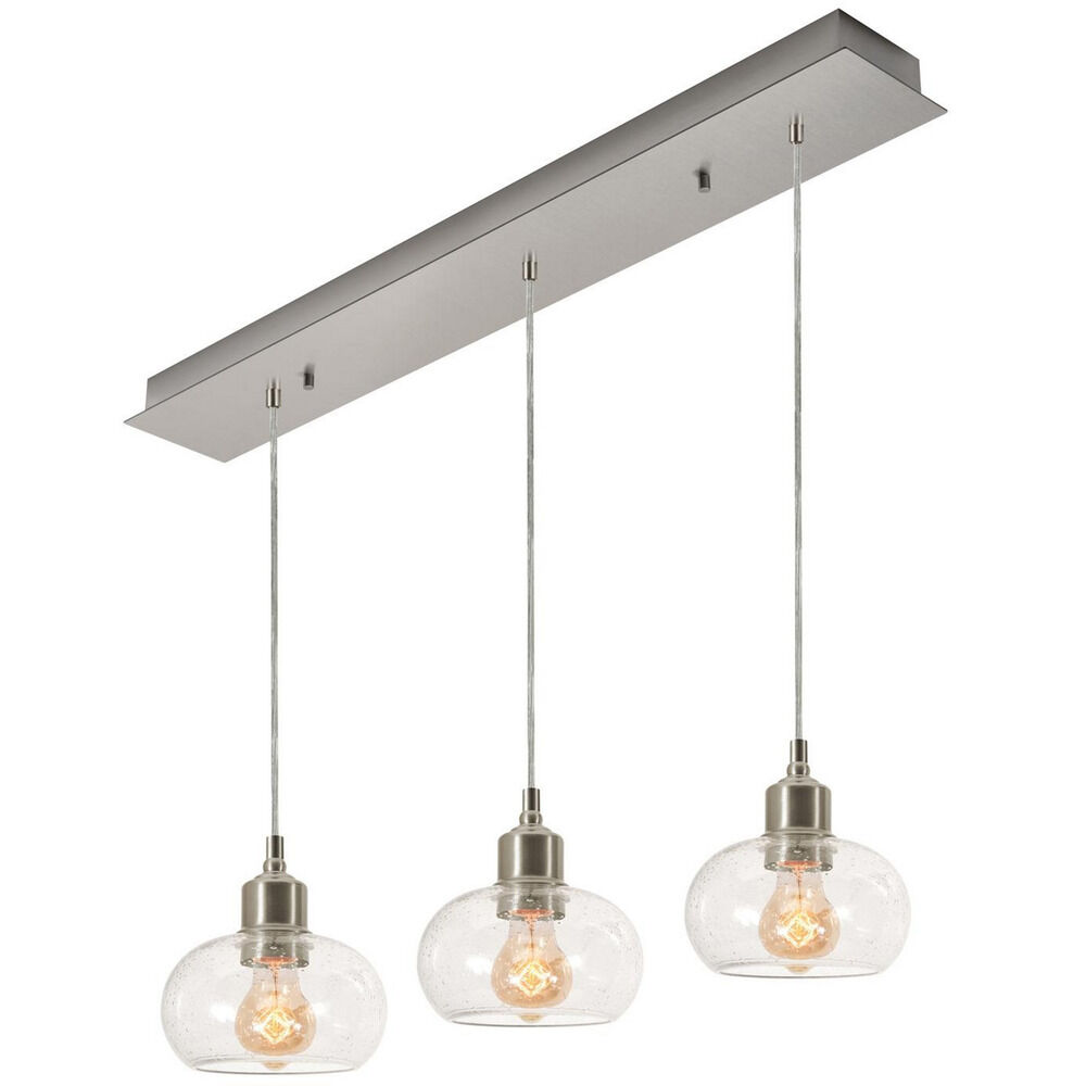Traditional seeded glass linear multi-pendant. 9 ft. adjustable cord. Available in two finishes. Uses medium-base bulbs (not included)