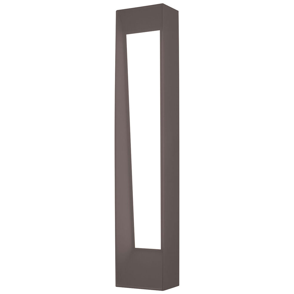 Large Modern LED outdoor wall sconce with striking angled metal housing. White acrylic diffuser. Powder coat finish. Vertical or horizontal mounting. Mount in groups for a beautiful wall art effect. Available in two sizes and finishes.