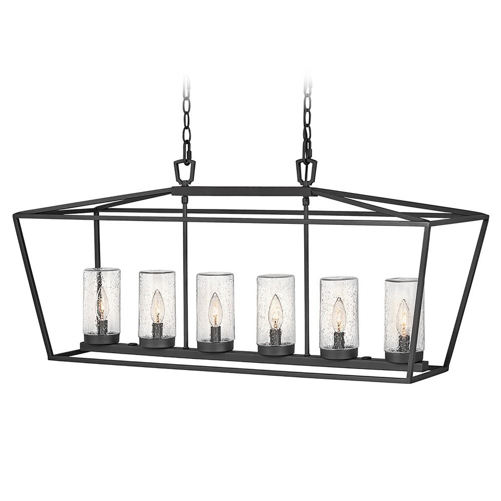 The Alford Place Six-Light Linear outdoor lantern by Hinkley Lighting is the perfect lantern for your outdoor living space or covered front porch. The Alford Place features a die-cast frame and clear seeded glass shades that fully protect the light bulbs, making this fixture suitable for wet locations. The Alford Place also features a Museum Black finish and requires six 60W candelabra base light bulbs.
