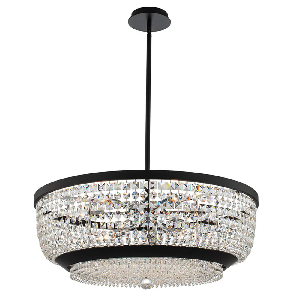 Crystal matte black & polished chrome 9-light pendant light with clear crystal shade