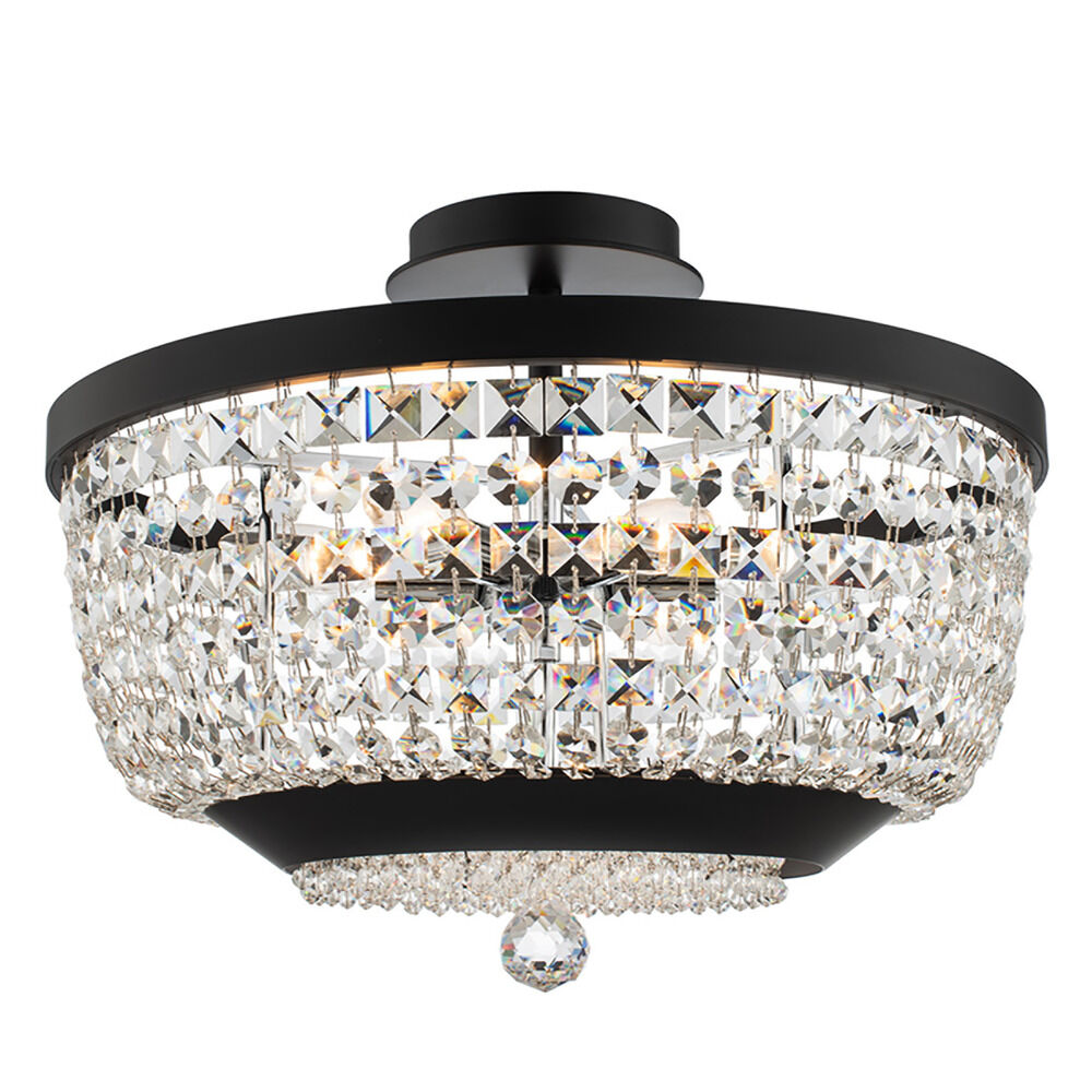 Crystal matte black & polished chrome 6-light indoor ceiling light with clear crystal shade