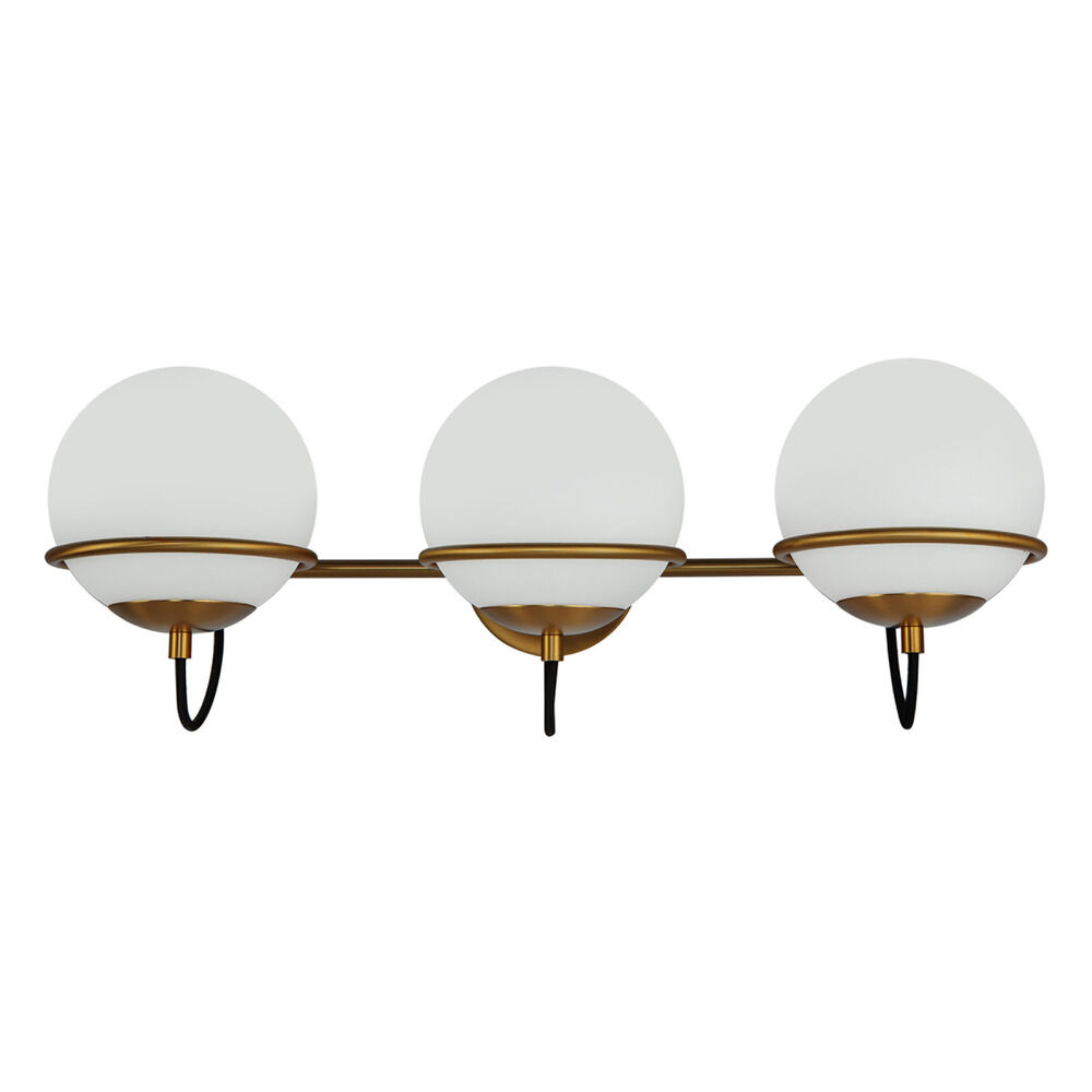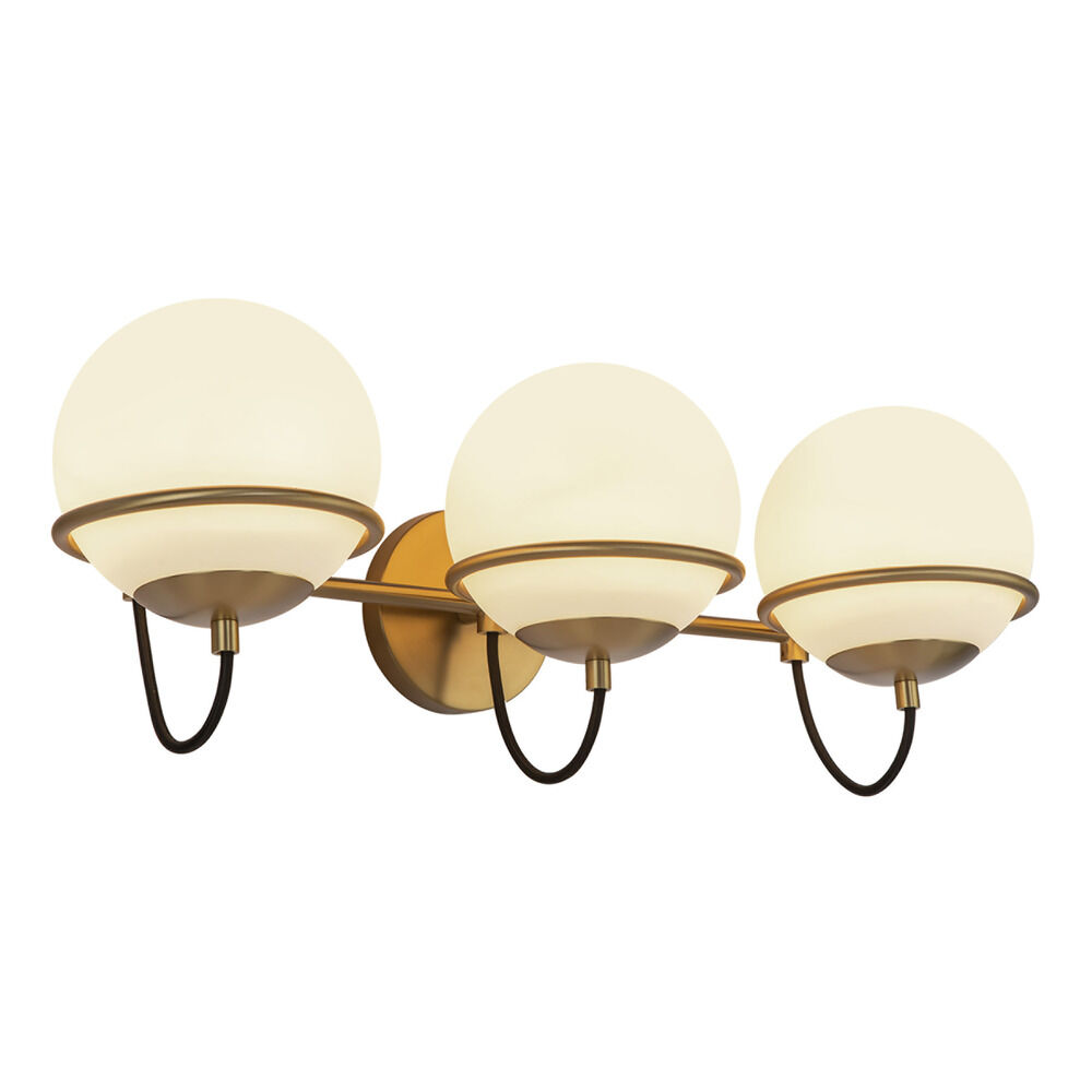 Contemporary / modern aged gold 3-light bathroom light with matte opal glass shade