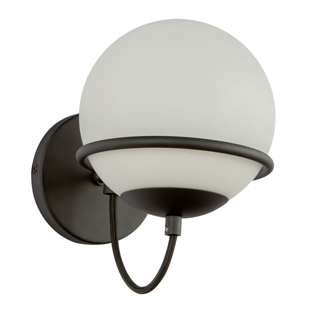 Contemporary / modern matte black 1-light sconce with matte opal glass shade