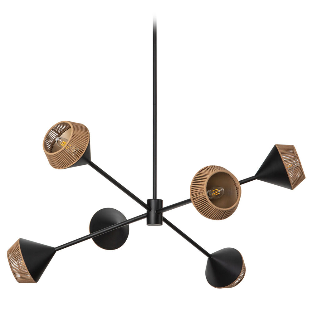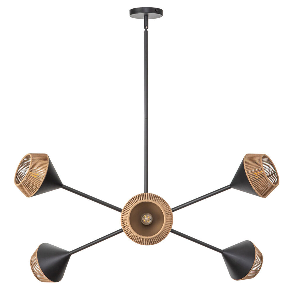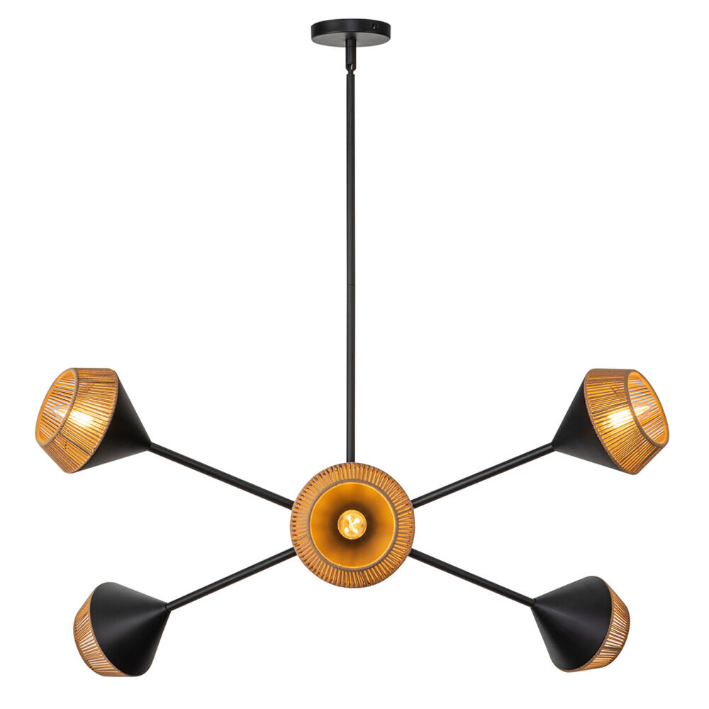 Mid-century modern matte black 6-light chandelier with black metal shade