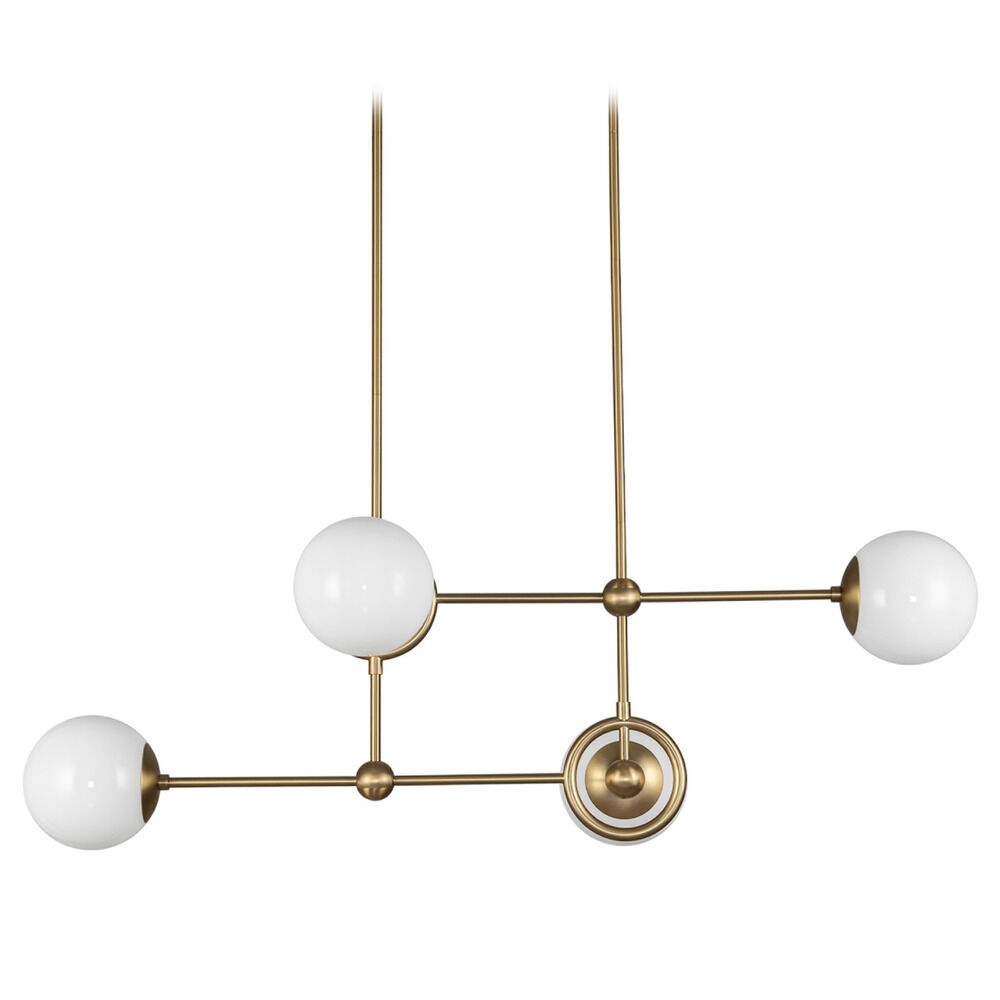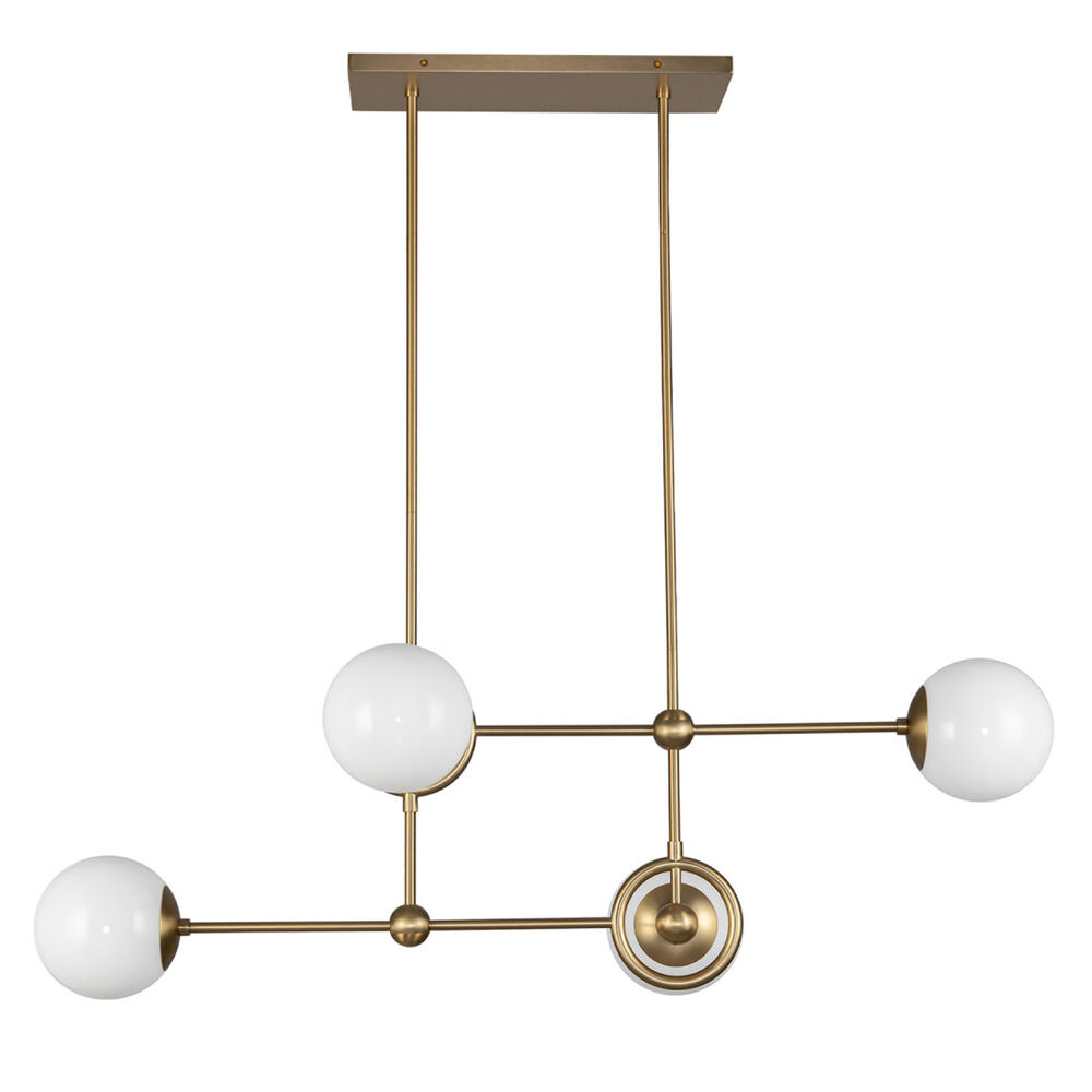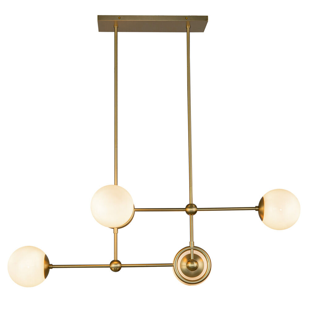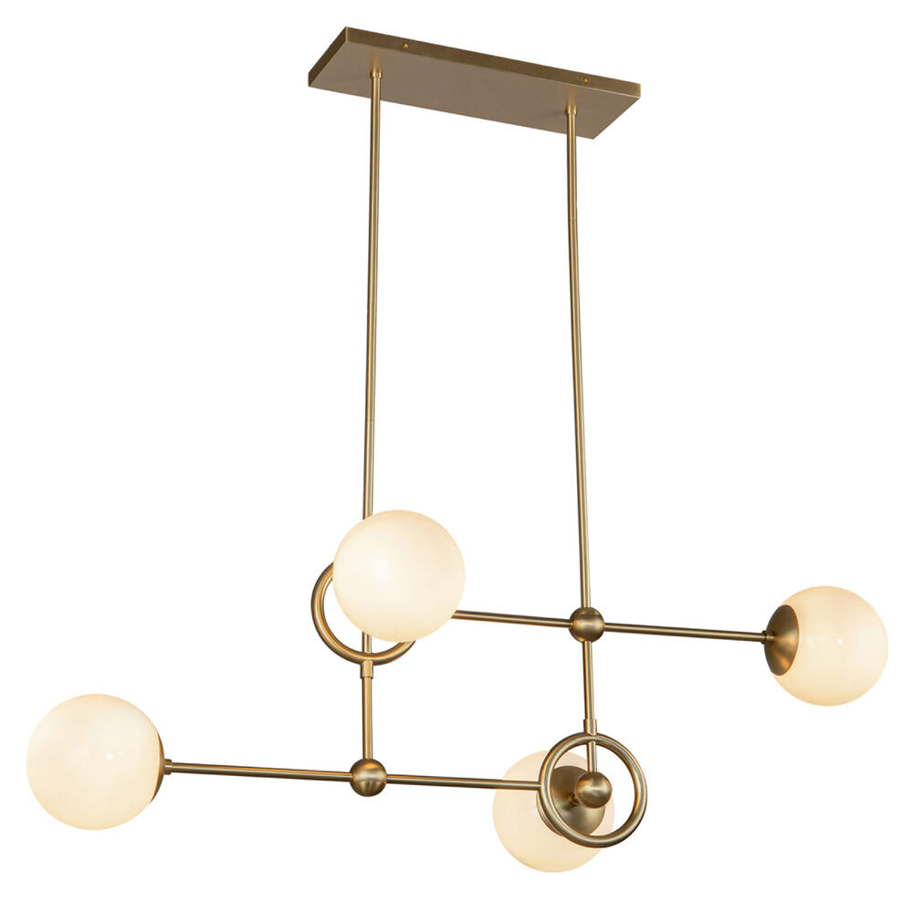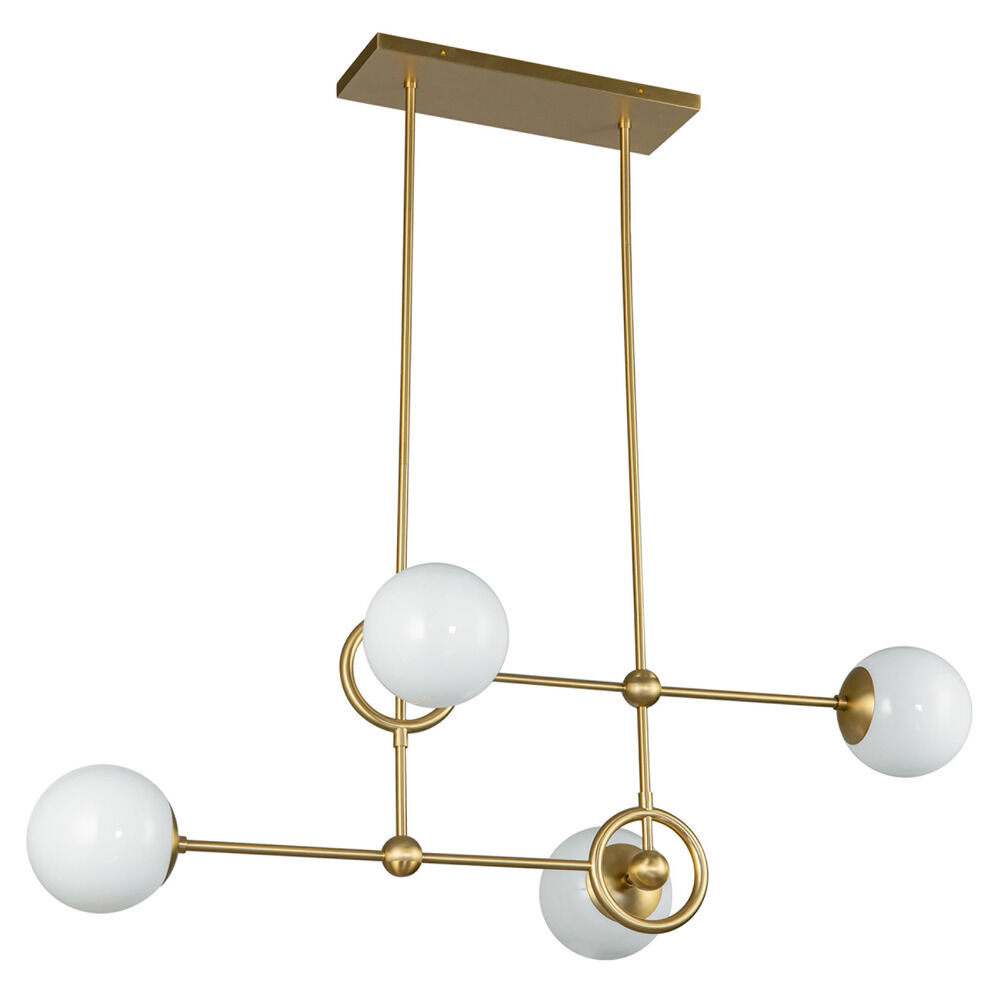 Contemporary / modern brushed gold 4-light chandelier with glossy opal glass shade