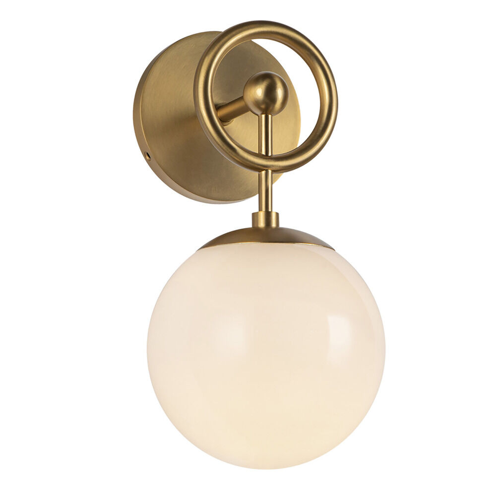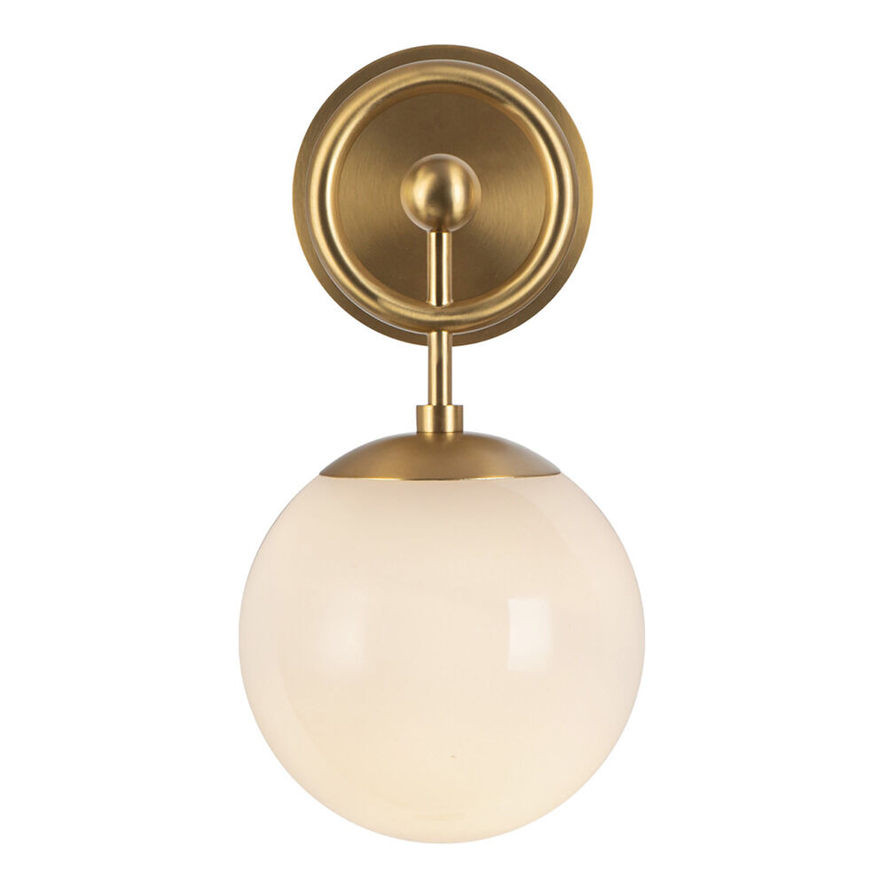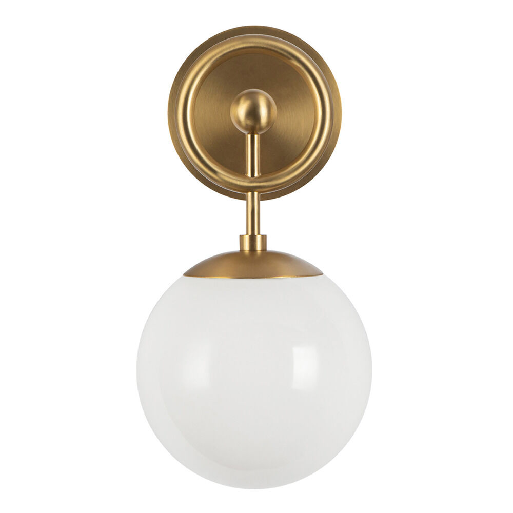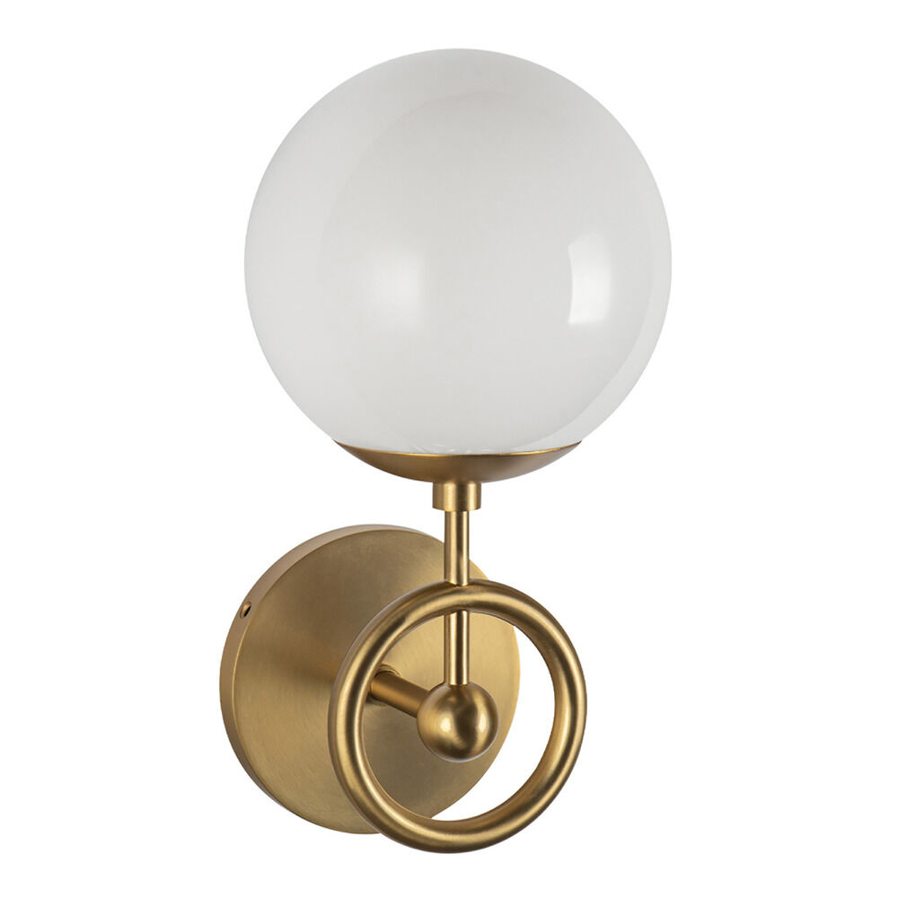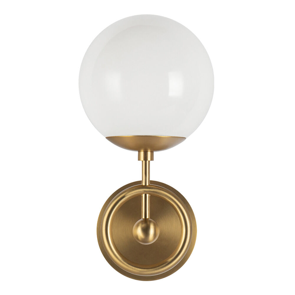 Contemporary / modern brushed gold 1-light sconce with glossy opal glass shade