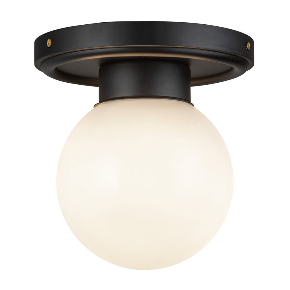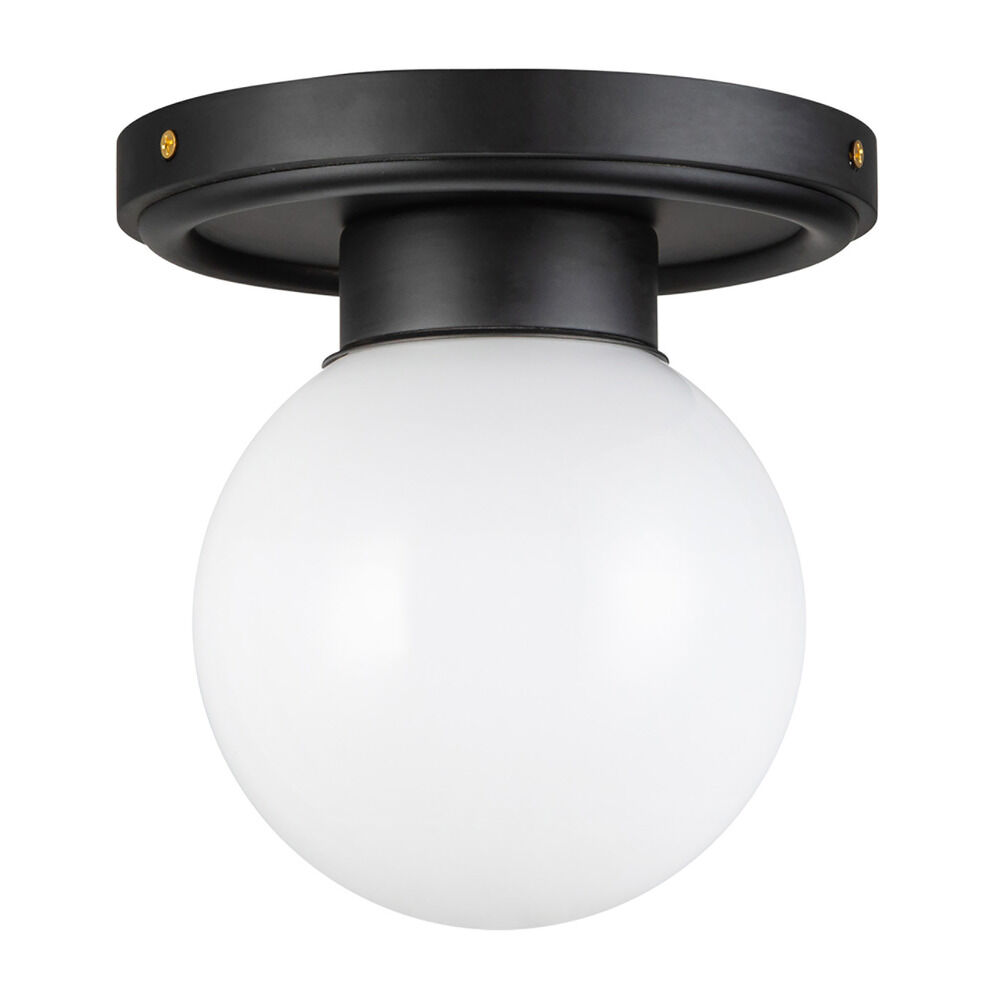 Contemporary / modern matte black 1-light indoor ceiling light with glossy opal glass shade