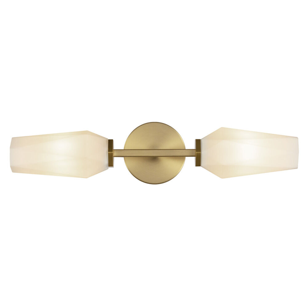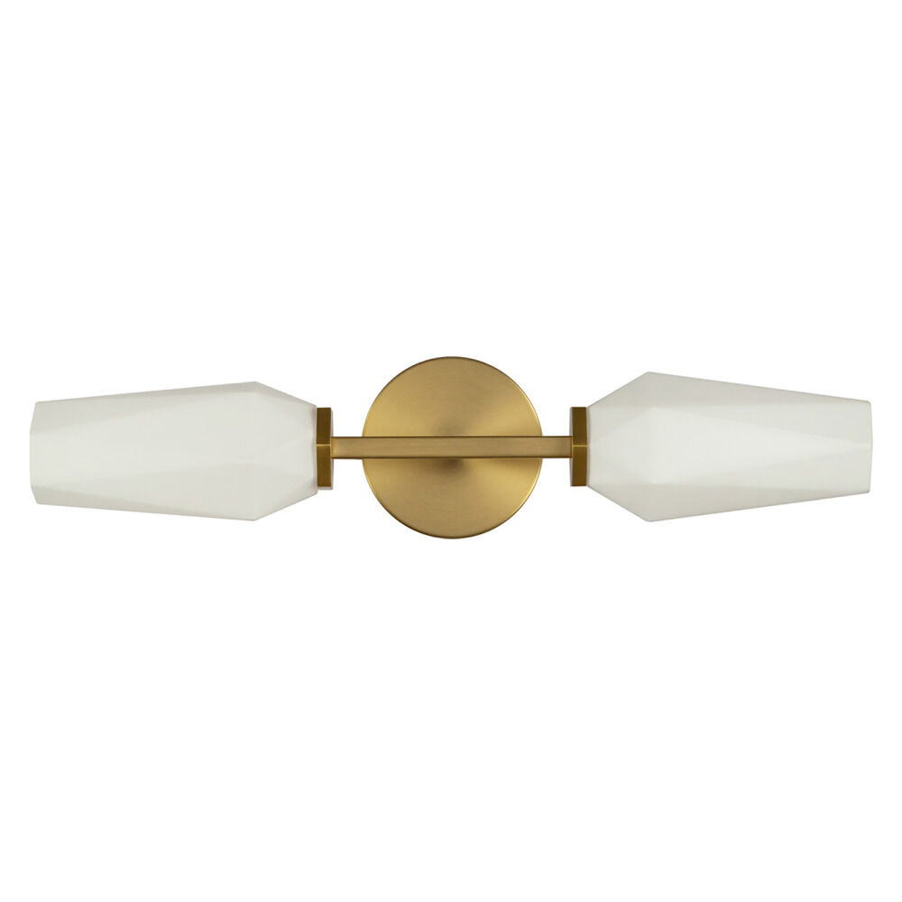 Contemporary / modern brushed gold 2-light bathroom light with matte,faceted opal glass shade