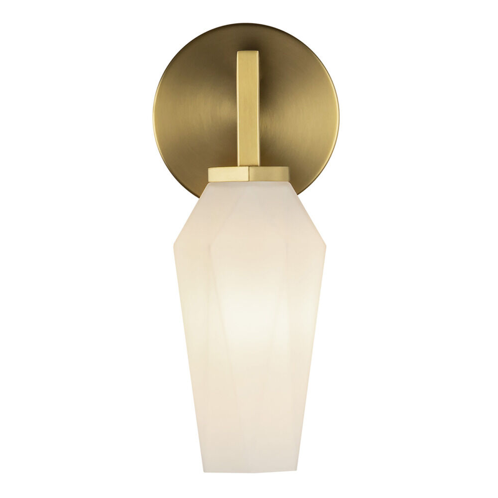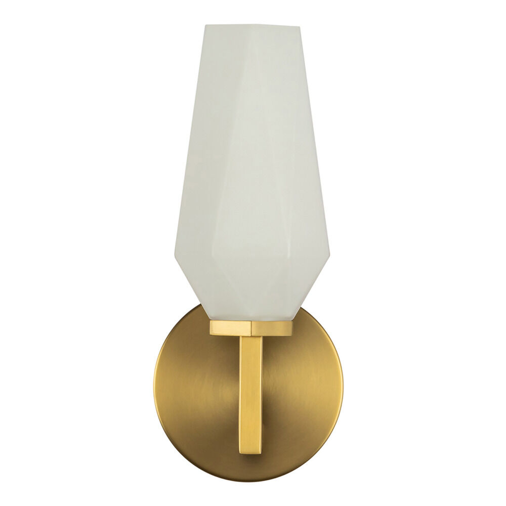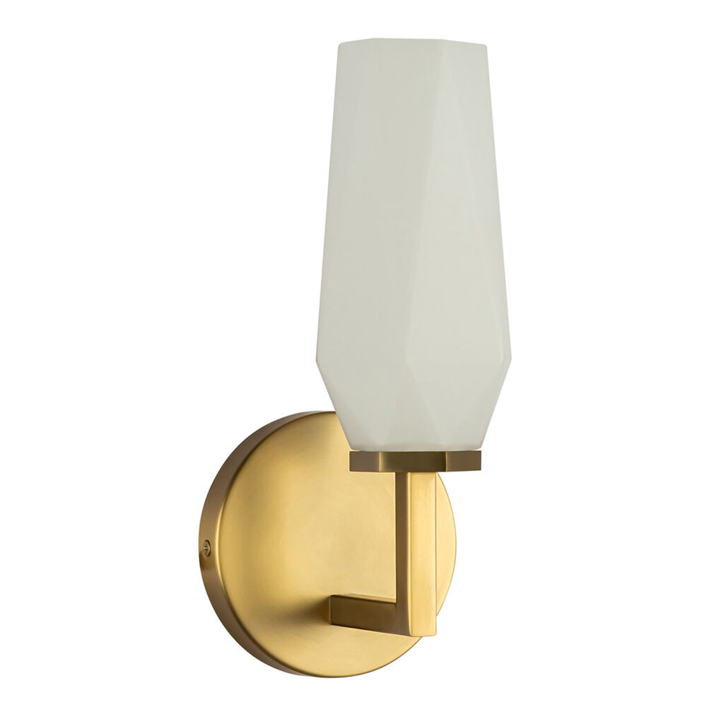 Contemporary / modern brushed gold 1-light sconce with matte,faceted opal glass shade