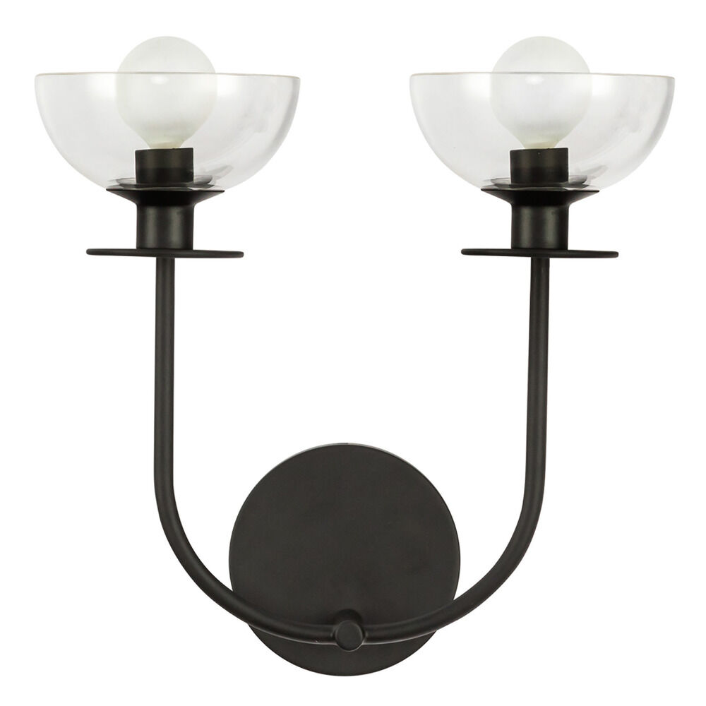 Contemporary / modern matte black 2-light bathroom light with clear glass shade