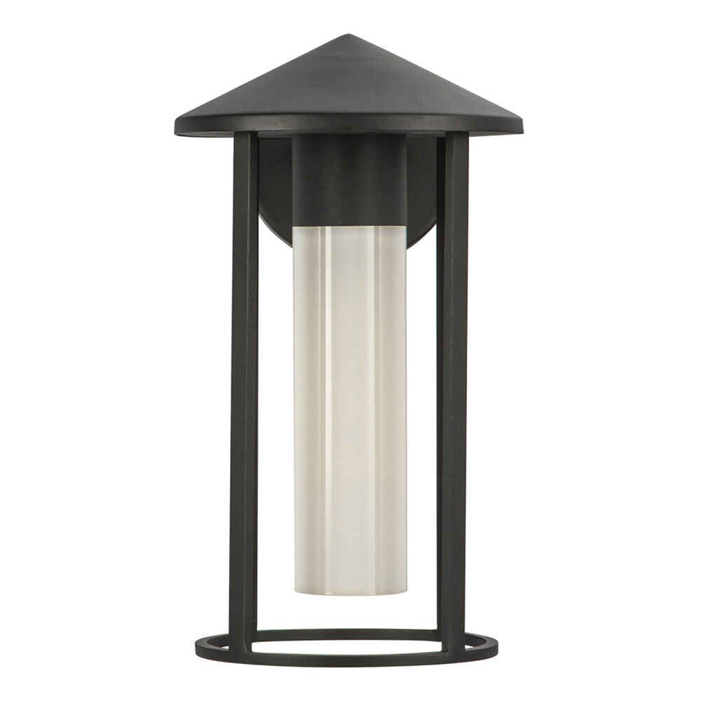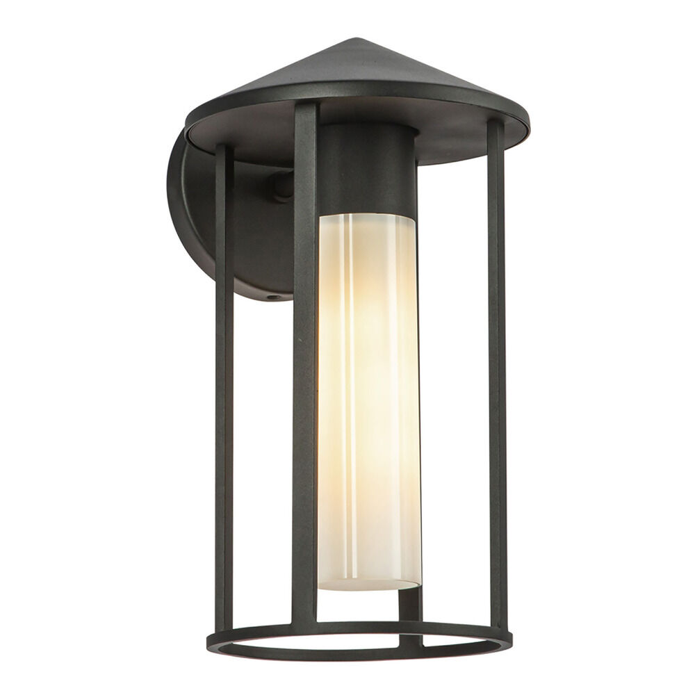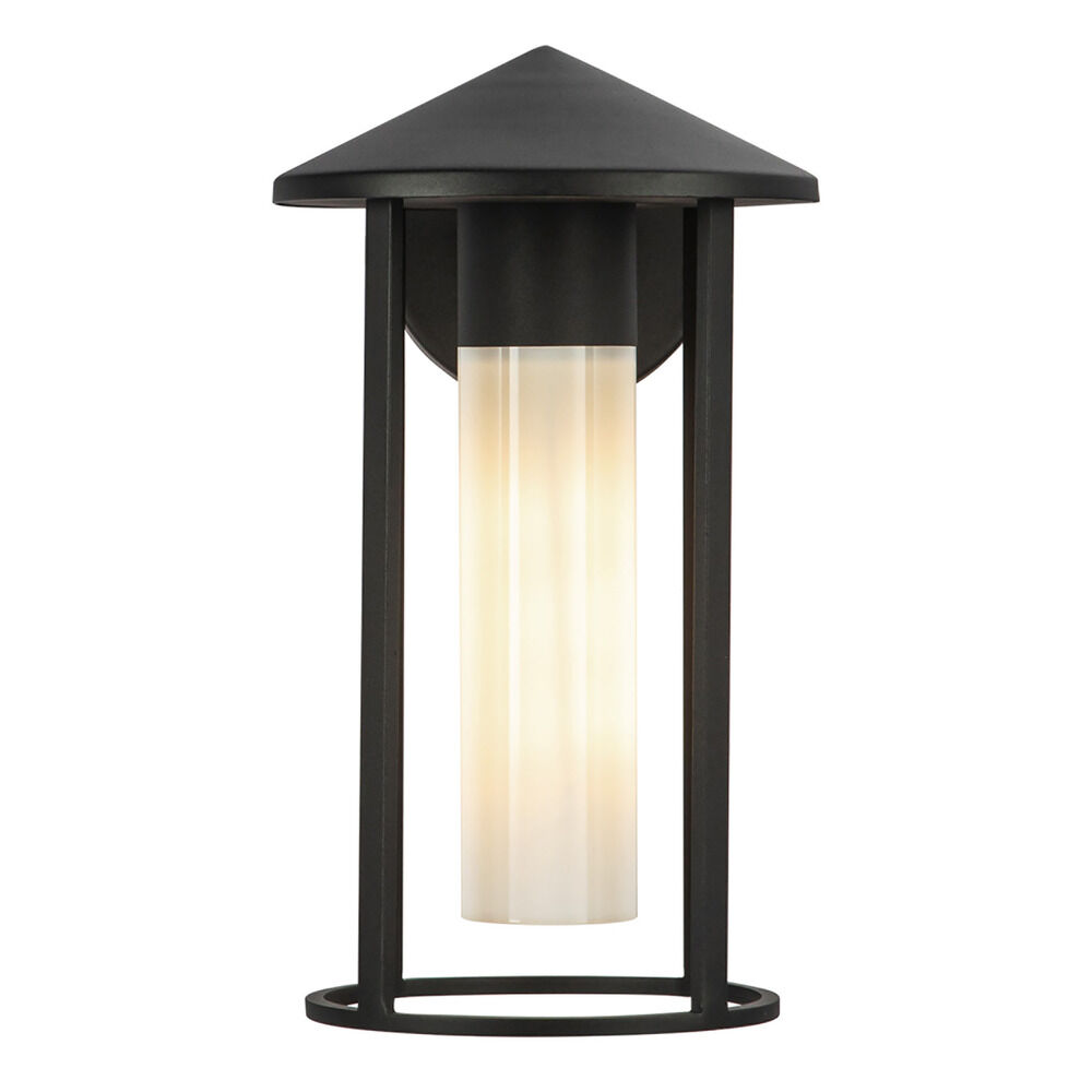 Contemporary / modern black 1-light outdoor wall light with glossy opal glass shade