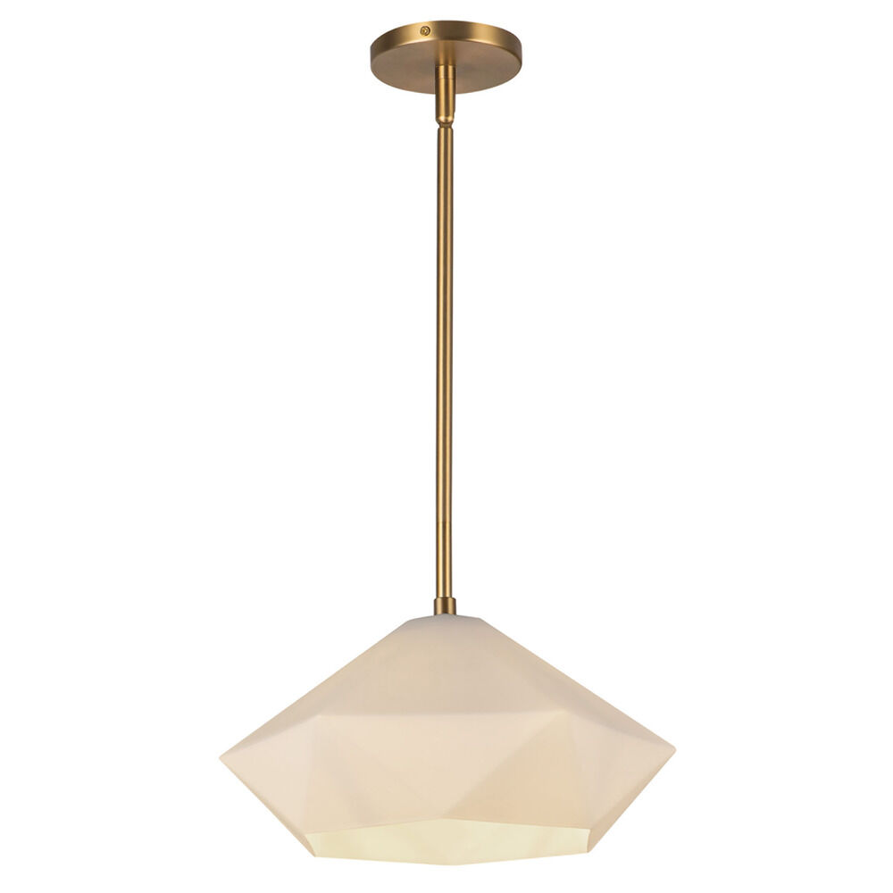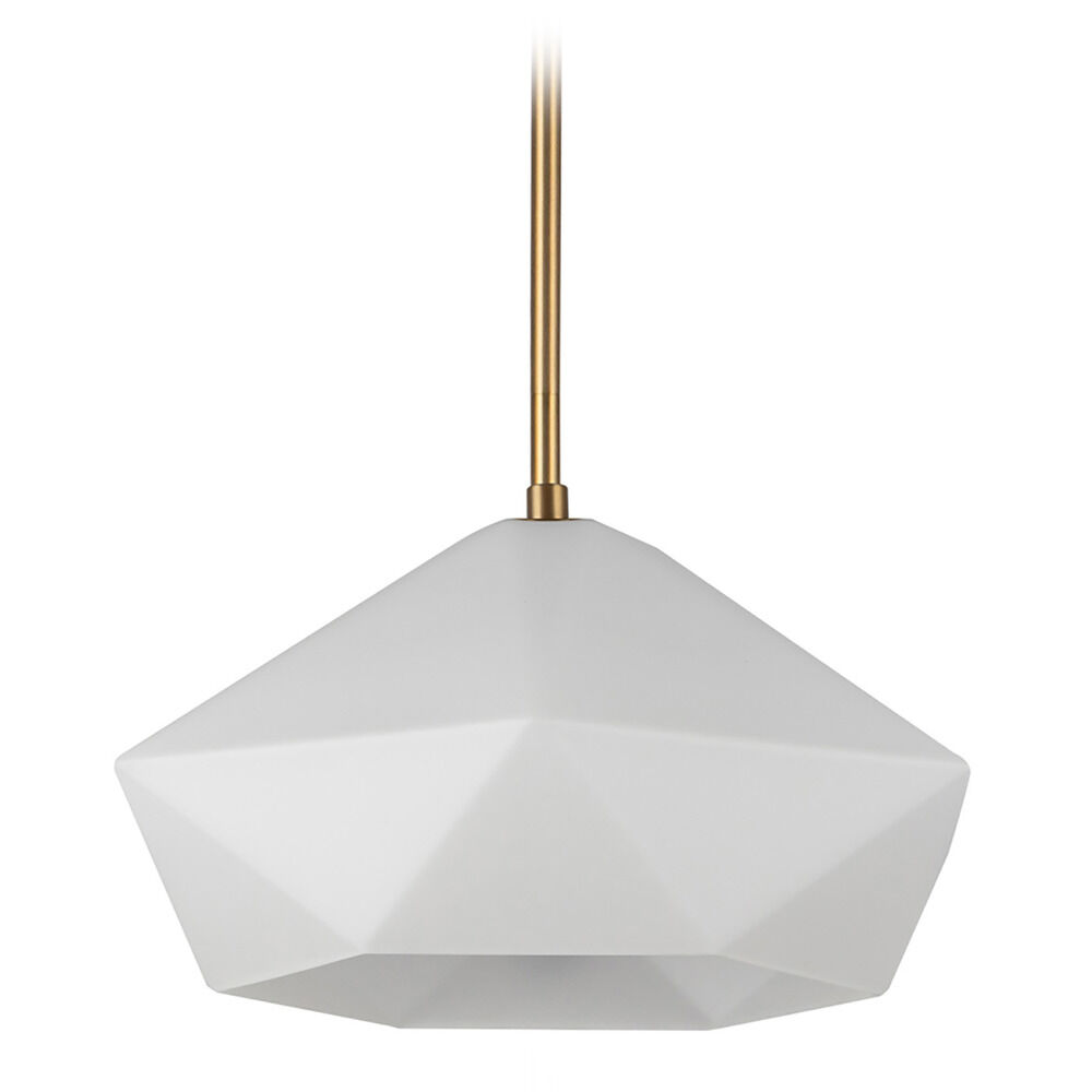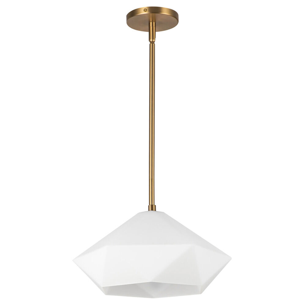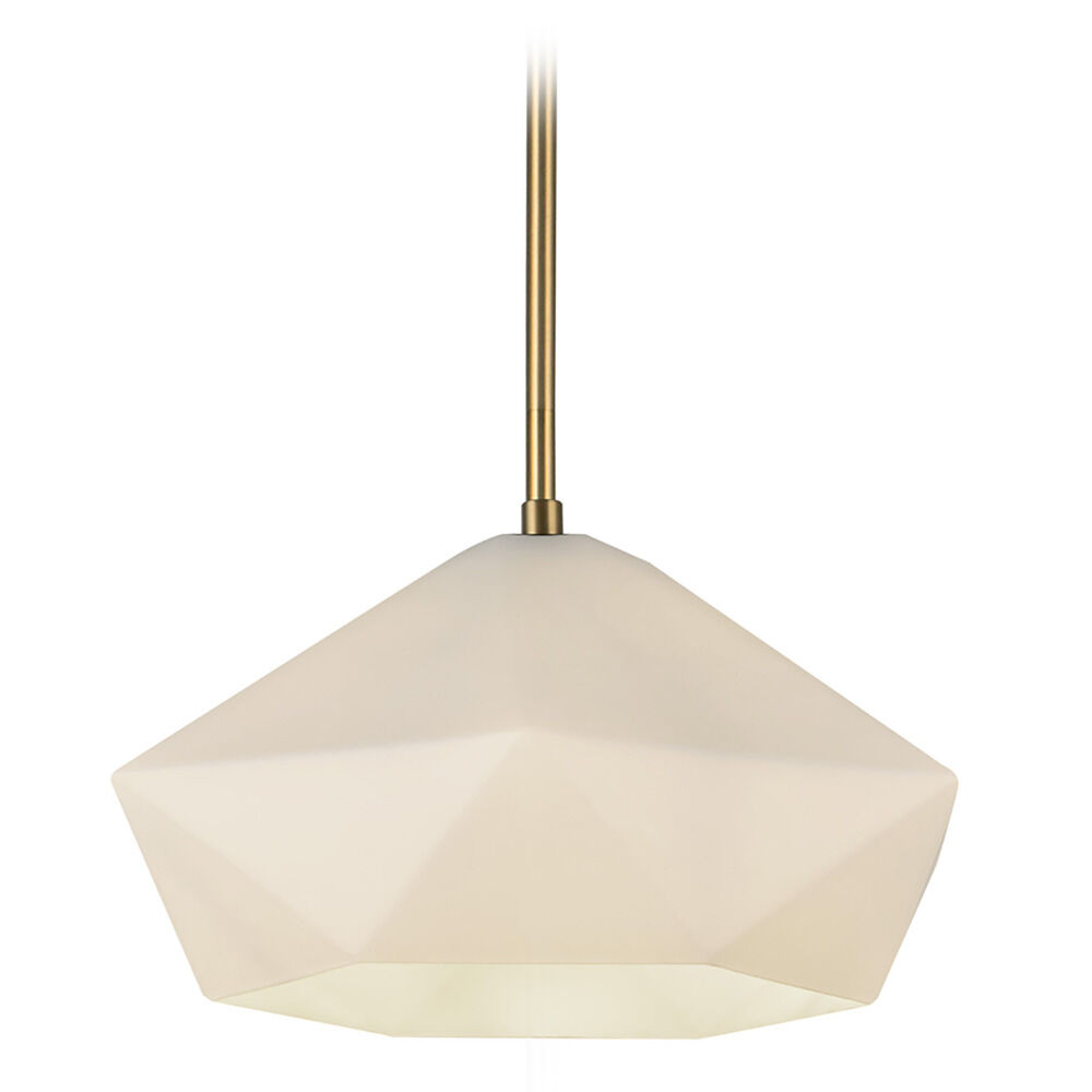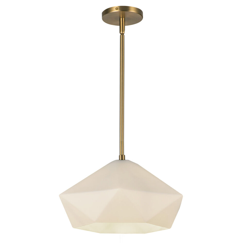 Contemporary / modern brushed gold 1-light pendant light with matte,faceted opal glass shade