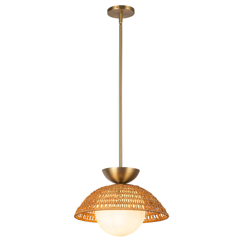 Mid-century modern brushed gold 1-light pendant light with matte opal glass shade