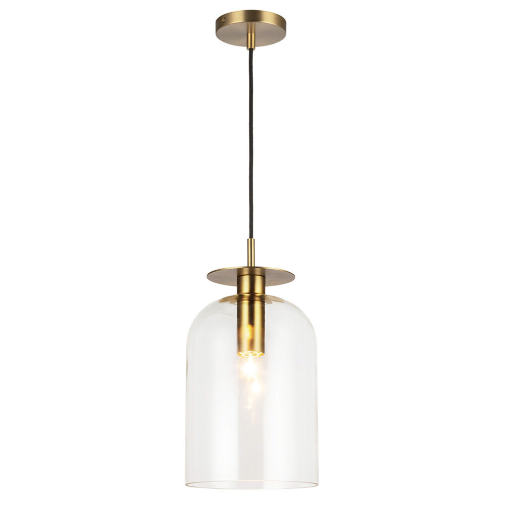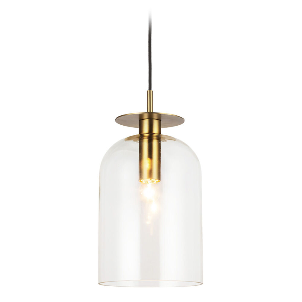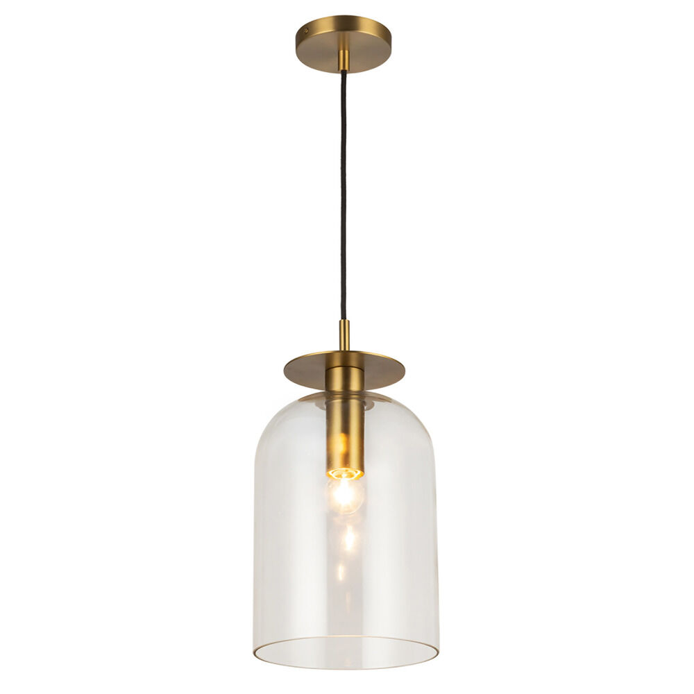 Contemporary / modern brushed gold 1-light mini-pendant light with clear glass shade