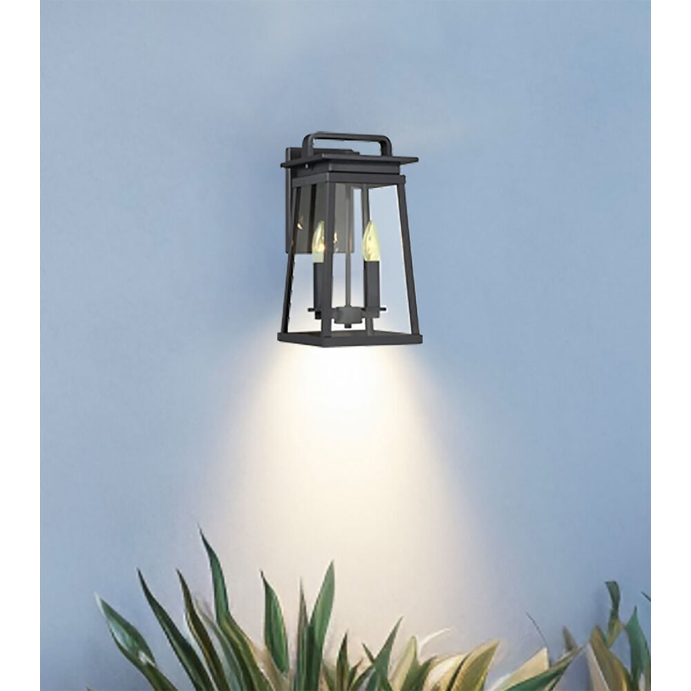 Transitional coal 2-light outdoor wall light with clear glass shade