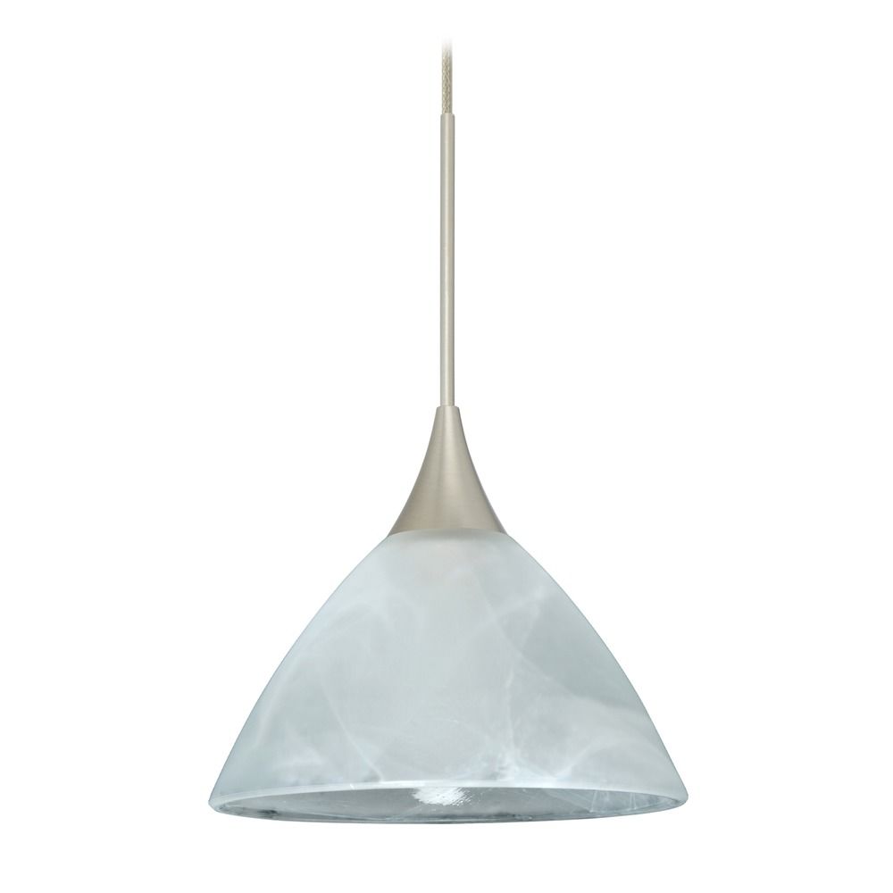 Domi has a classical bell shape that complements aesthetic, while also built for optimal illumination. Our Marble glass is a pressed glass that features swirls of white throughout semi-translucent frost, to create a faux alabaster appearance. When lit this gives off a light that is functional and soothing. The smooth satin finish on the clear outer layer is a result of an extensive etching process. This handcrafted glass uses a process where every glass is consistently produced using a press mold, keeping variations to a minimum. The 12V cord pendant fixture is equipped with a 10' braided coaxial cord with Teflon jacket and a low profile flat monopoint canopy. These stylish and functional luminaries are offered in a beautiful Satin Nickel finish.