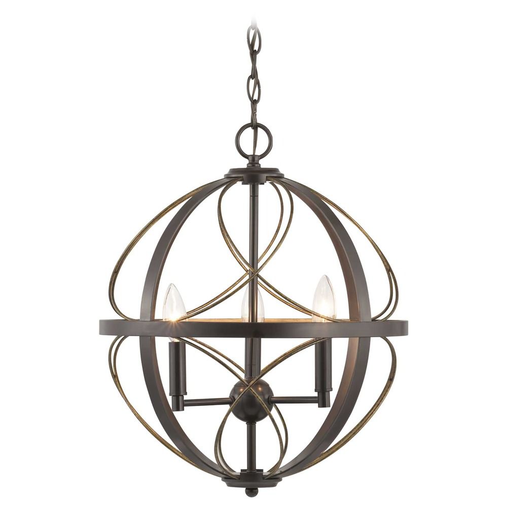 An airy artful pendant, Brandywines silhouette features an interlocking sphere with decorative details. The elegant frame highlights a juxtaposition of bold accents and delicate, hand gilded wire accents, finished in an Antique Bronze finish. Capturing a timeless look, this three-light pendant is idea for Farmhouse or Transitional interior settings.
