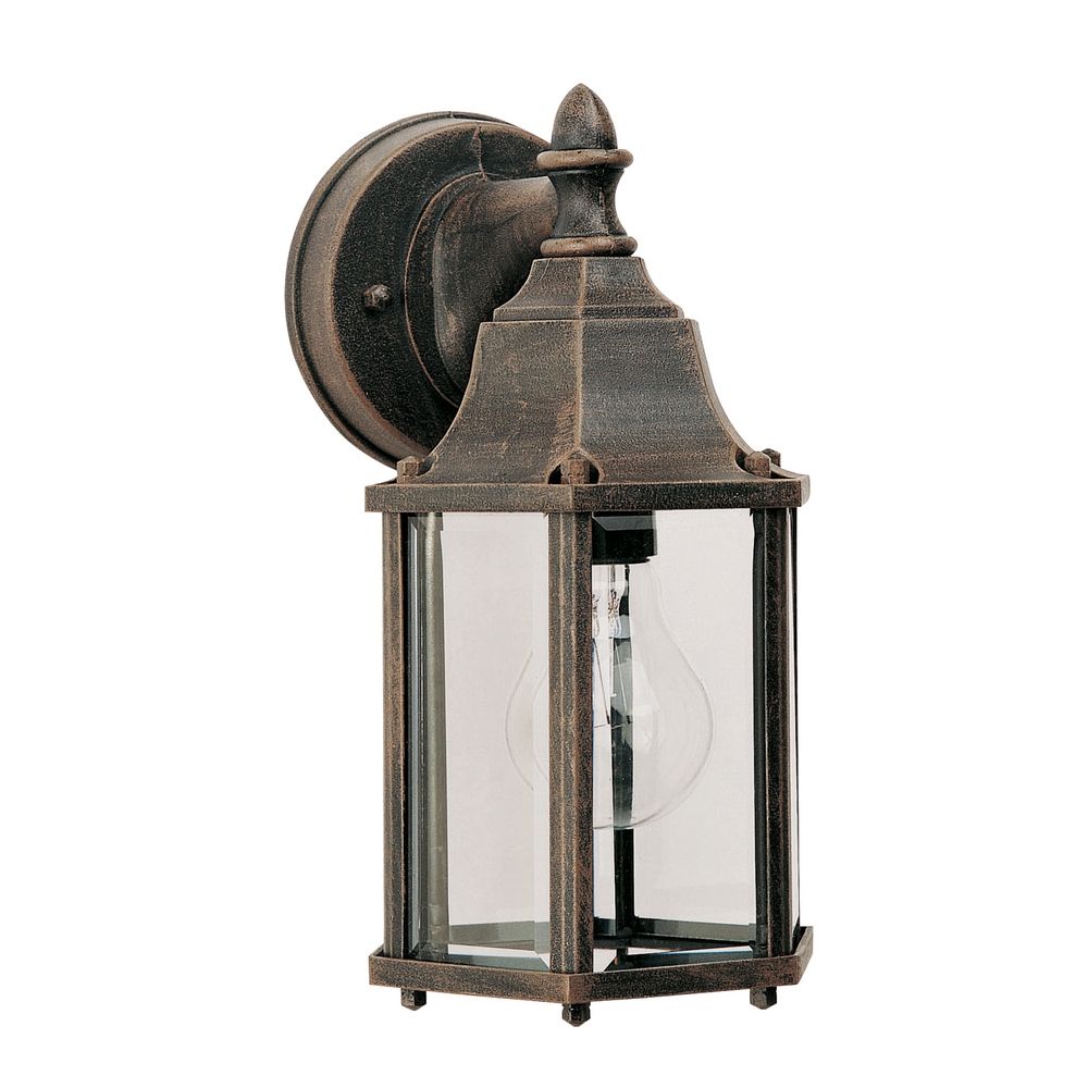 Traditional rust patina 1-light outdoor wall light.