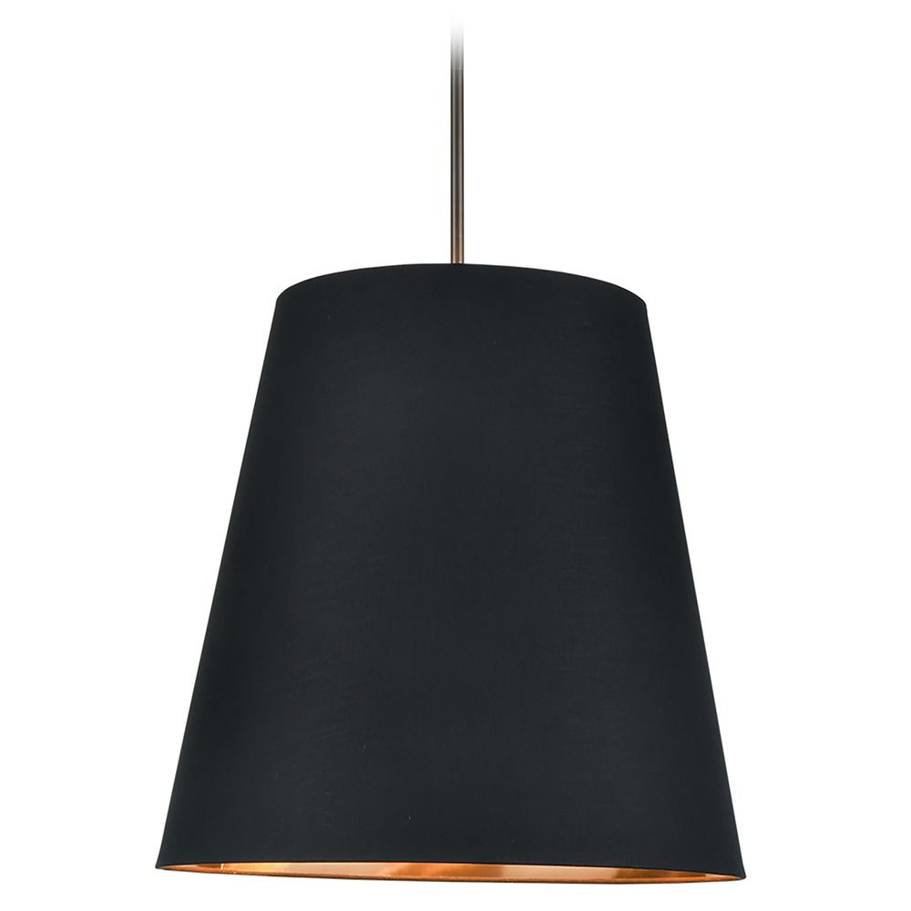 Contemporary / modern urban bronze 3-light pendant light with black linen / gold parchment fabric shade
