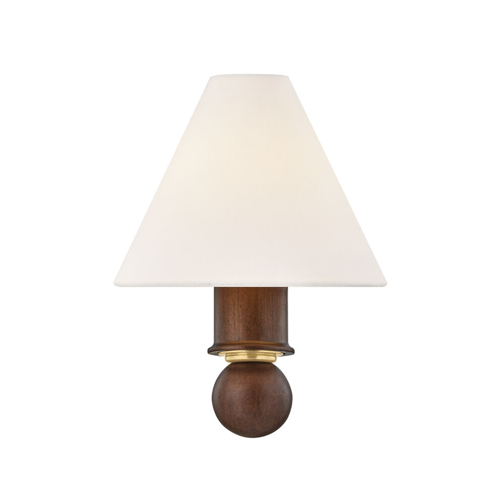 The Candice Wall Sconce in Aged Brass by Mitzi by Hudson Valley exudes timeless charm through its thoughtful balance of form and material. Though petite in scale, its distinctive turned wood stem commands attention, showcasing elegant contours that speak to traditional craftsmanship. The polished wood finish brings warmth and a sense of heritage, while the white linen half-shade softens the overall silhouette with an inviting, tailored touch. Beneath the shade, an Aged Brass reflector adds a hint of radiance, casting a gentle, golden glow that enhances the fixture's vintage-inspired character. Ideal for spaces that celebrate refined simplicity, the Candice sconce brings understated elegance and a sense of history to walls and hallways alike.