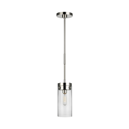 Chapman & Myers Garrett polished nickel pendant. Industrial inspired design provides a handsomely crafted body encircled by ¼-inch thick clear glass accentuated by machined bolt hardware. To complete the design aesthetic, a T10 60W max. medium-based incandescent bulb is recommended (not included). For a more energy-efficient and eco-friendly design, consider using a dimmable LED T10 medium-based bulb (sold separately). Measures 5 ½-inches wide by 21 ¾-inches tall. An excellent choice above kitchen islands, over kitchen sinks, in bathrooms, and more. Damp location rated.