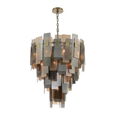 Draped in an Antique Brass finish, the Cocolina Chandelier is more than just a lighting fixture-it's a work of art. Intricate panels of glass, varying in shapes and sizes, cascade around the chandelier, creating a stunning, layered shield for the light bulbs within. These glass panels aren't just any glass; they dance between textures, offering both smooth and tactile surfaces that catch and refract light in mesmerizing patterns. Their colors, a harmonious blend of Amber and earth tones, paint a warm, welcoming hue that beckons cozy conversations and memorable moments.