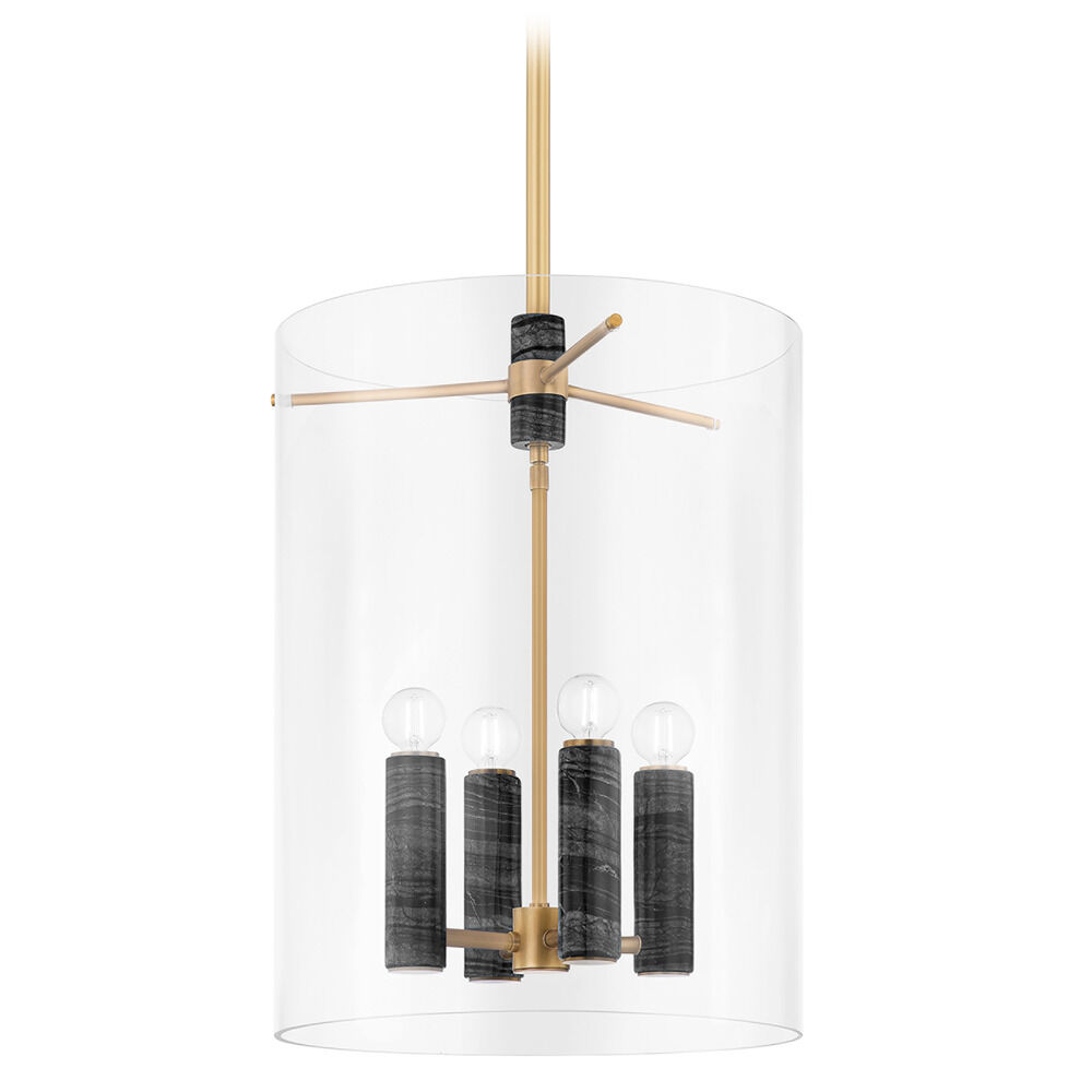 Corbett Lighting Adonis Vintage Brass & Black Marble LED Pendant Light with Cylindrical Shade