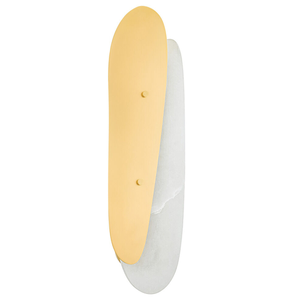 Aquamarine's smooth, irregular petals of Vintage Polished Brass and alabaster are placed slightly askew for a layered look. The natural shape and materials give this sconce an inviting, minimalist feel. The fixture can be rotated to feature either brass or alabaster on the outside.Due to the one-of-a-kind nature of the medium, exact colors and patterns may vary slightly from the image shown.