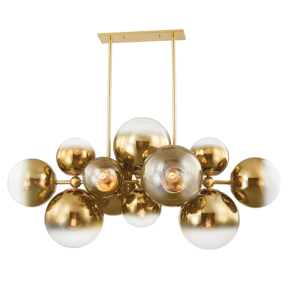 This showstopper features clusters of ombre glass globes in various sizes. Each orb transitions from brass to clear and the ombre lighting effect is simply stunning. Whether a chandelier, flush mount, sconce or linear, Kyoto will be the focal point in any space.