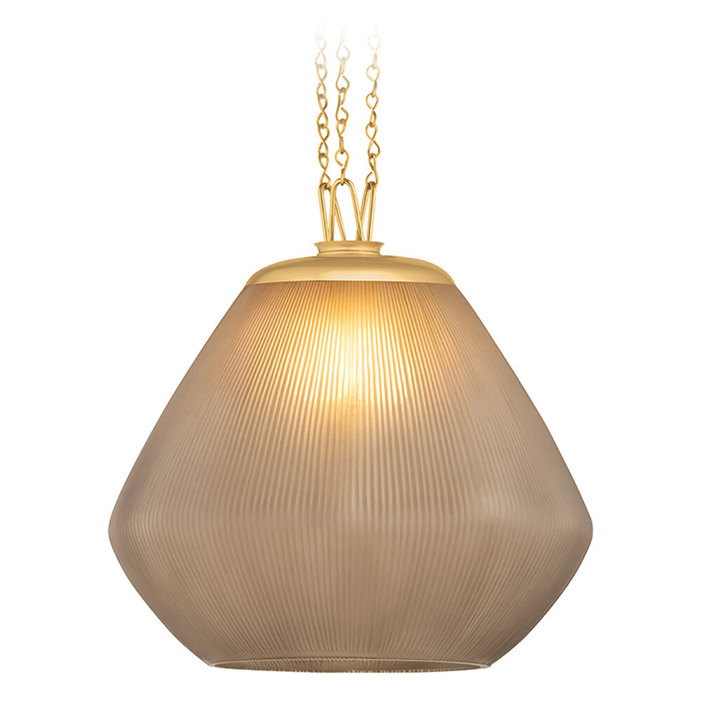 An elevated modern staple, the Saint-Tropez pendant is as effortless and sophisticated as the French paradise it is named after. Hand-etched in India, three custom loops suspend a stunning gem-shaped smoke glass shade and chains finished in Vintage Brass. While these jewelry-inspired details provide a sense of style, the overall simplicity of form allows Saint-Tropez to be used in multiples. Available in two sizes.