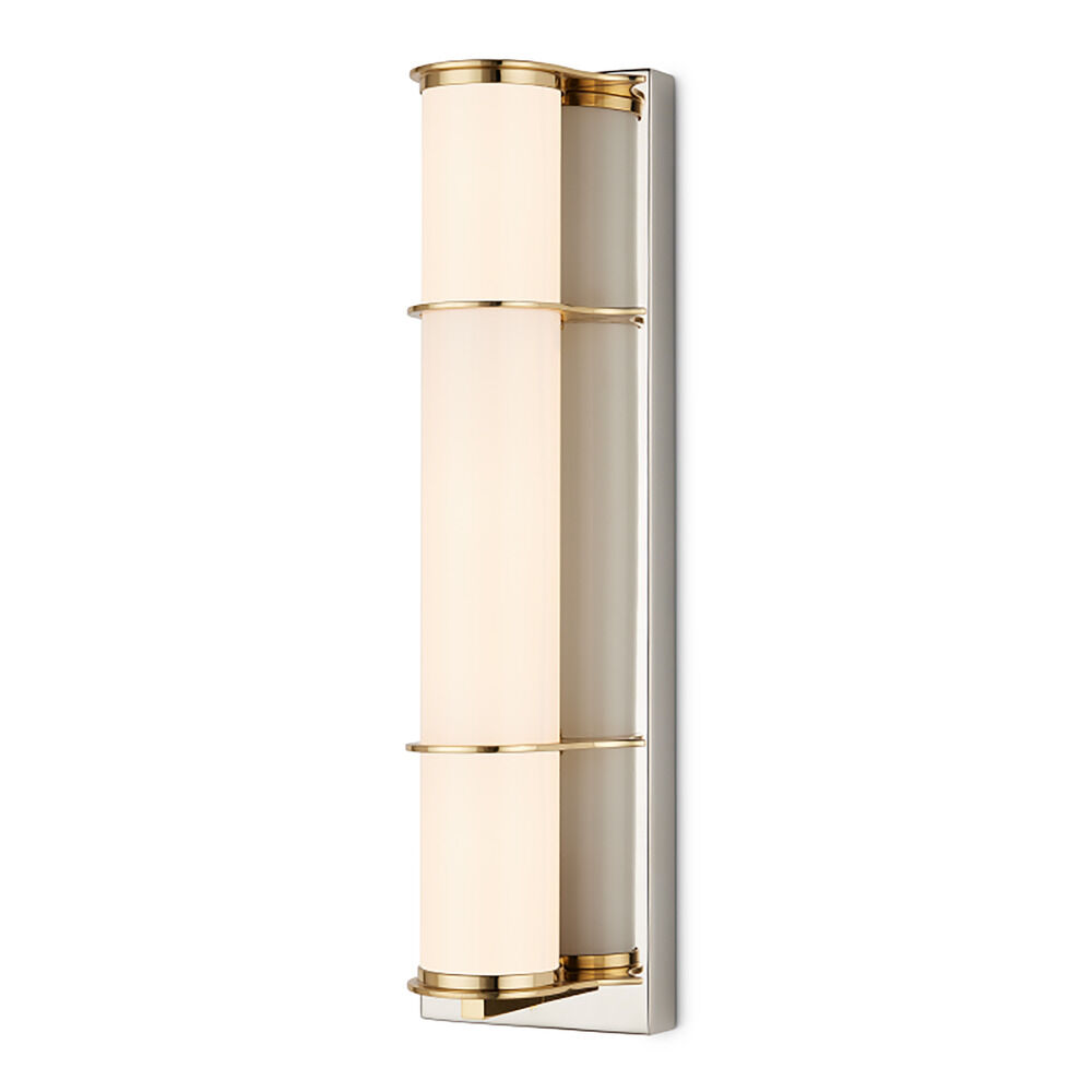 Contemporary / modern polished nickel & polished brass 1-light sconce with milky glass shade
