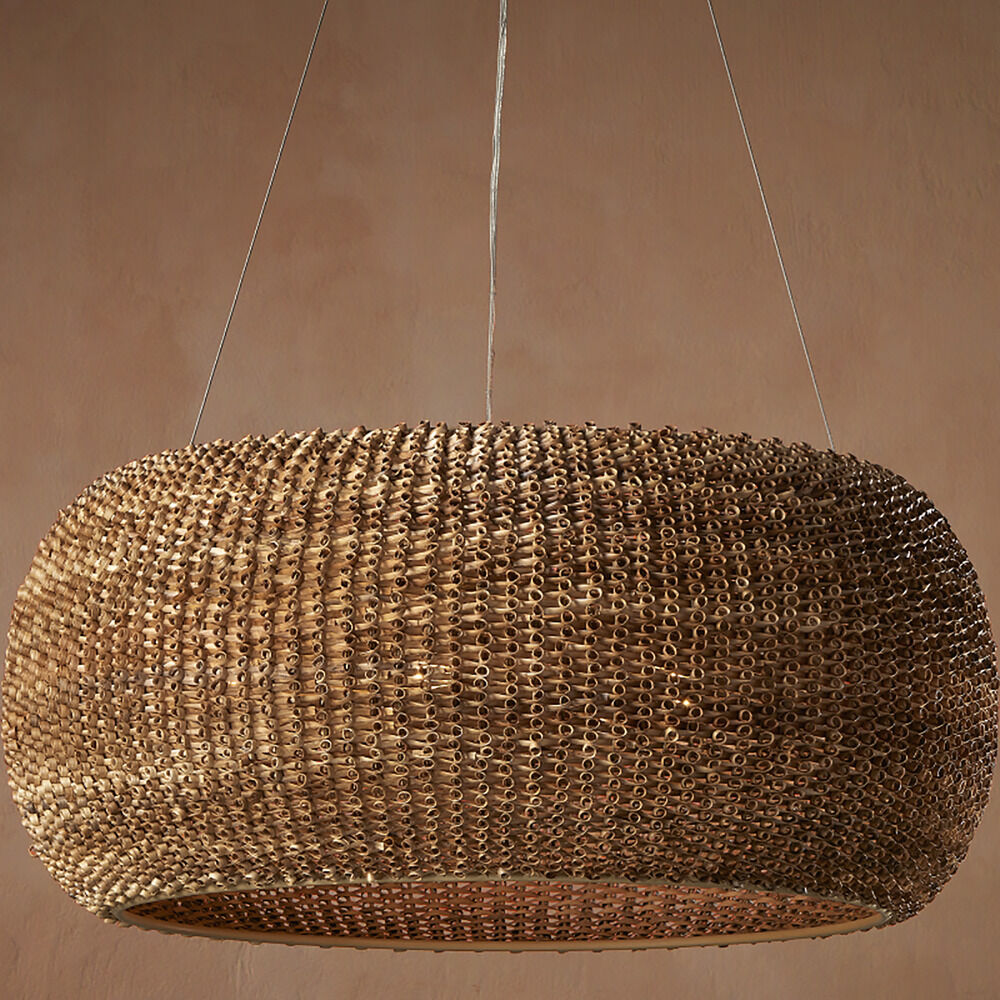 Bohemian natural & beige 6-light chandelier with natural rattan shade