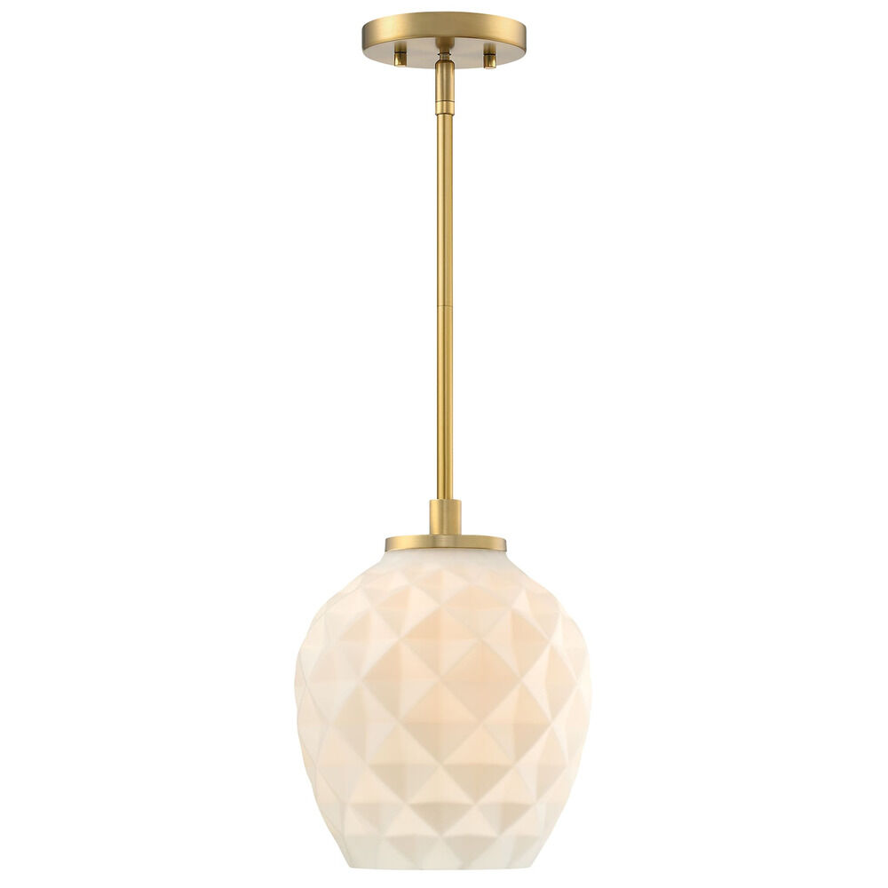 Coastal brushed gold 1-light mini-pendant light with etched opal glass shade