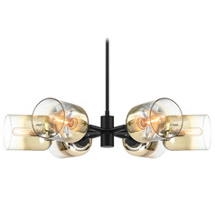 Contemporary / modern matte black 6-light chandelier with gold ombre glass shade