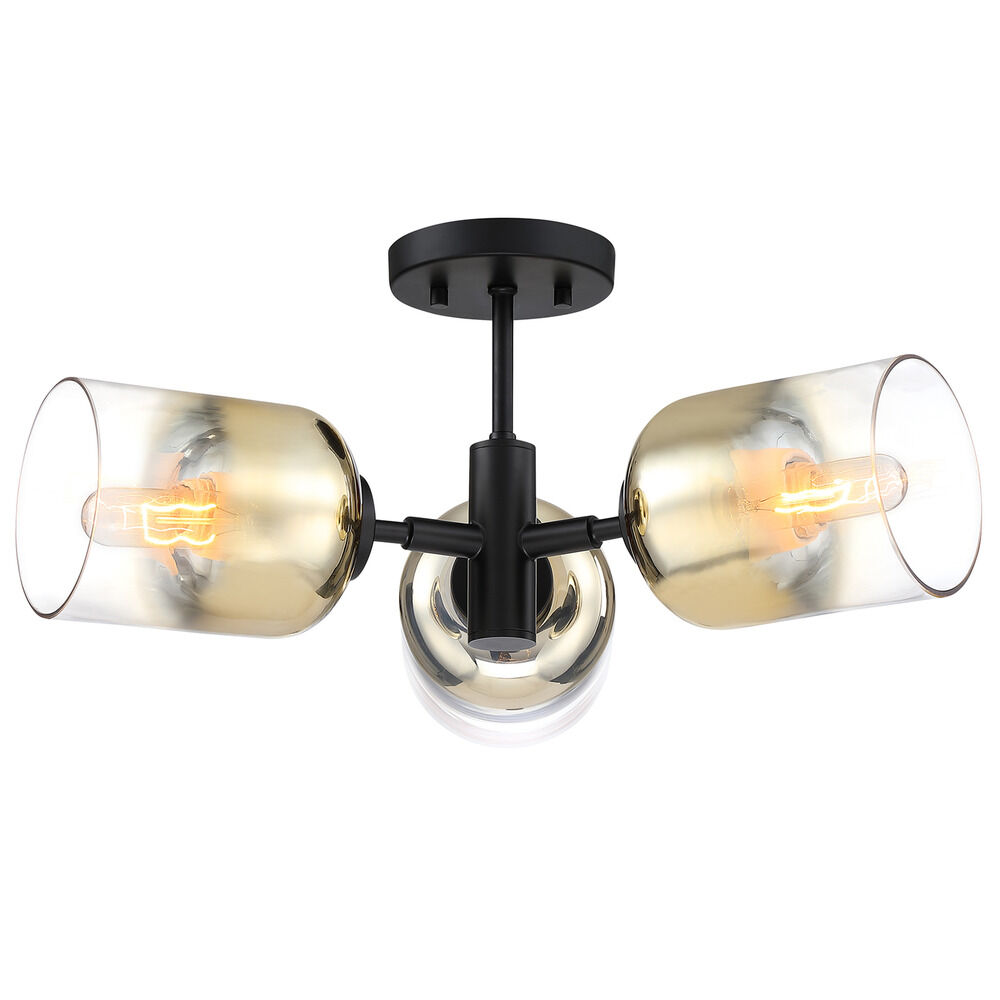 Contemporary / modern matte black 3-light indoor ceiling light with gold ombre glass shade