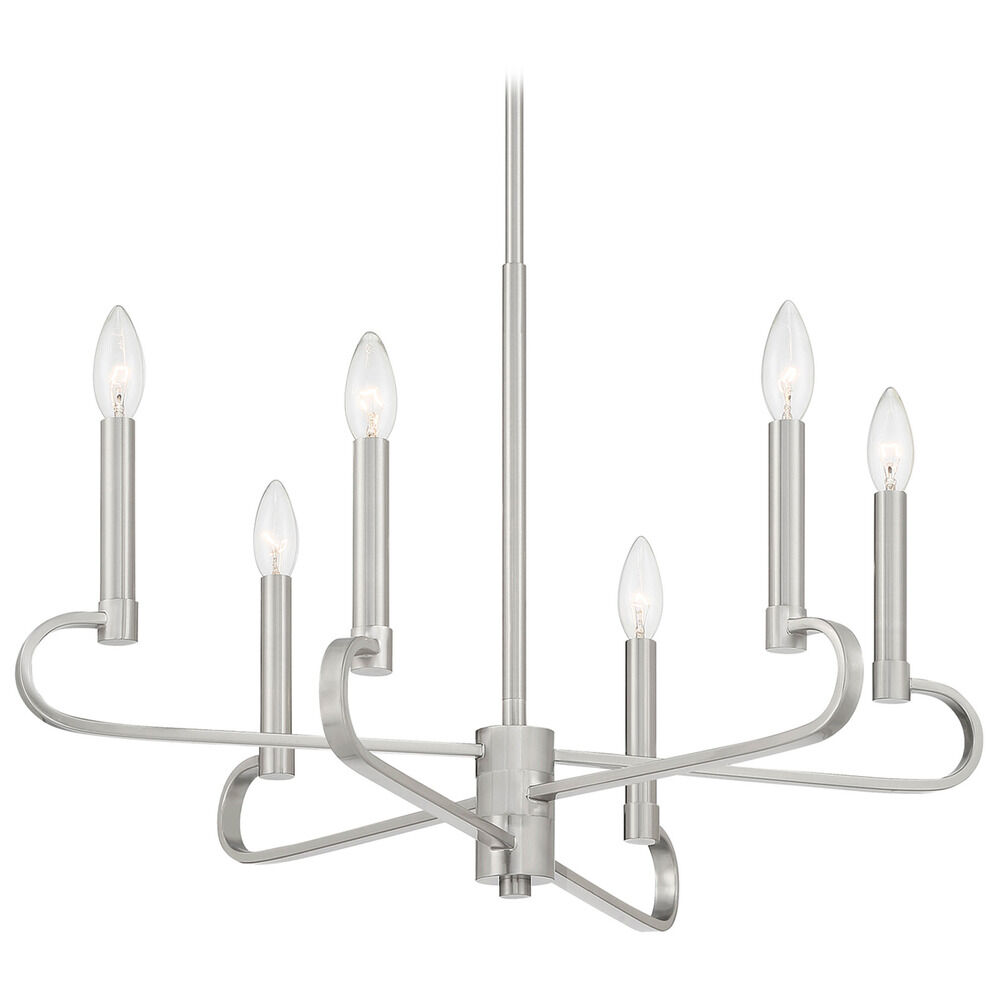 Contemporary / modern brushed nickel 6-light chandelier with