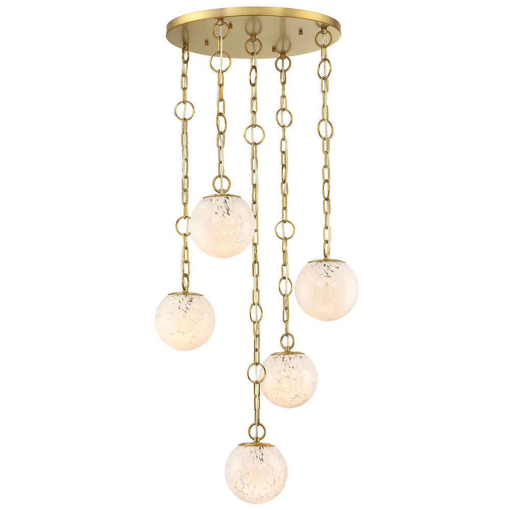 Contemporary / modern brushed gold 5-light pendant light with white art glass shade