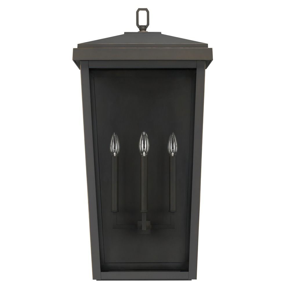 Illuminate the exterior of your home with the Donnelly Outdoor Wall Light by Capital Lighting. This wet-rated wall mount features an Oiled Bronze finish and Clear glass. This fixture requires three 60W maximum candelabra base light bulbs (not included). Clear bulbs are recommended.