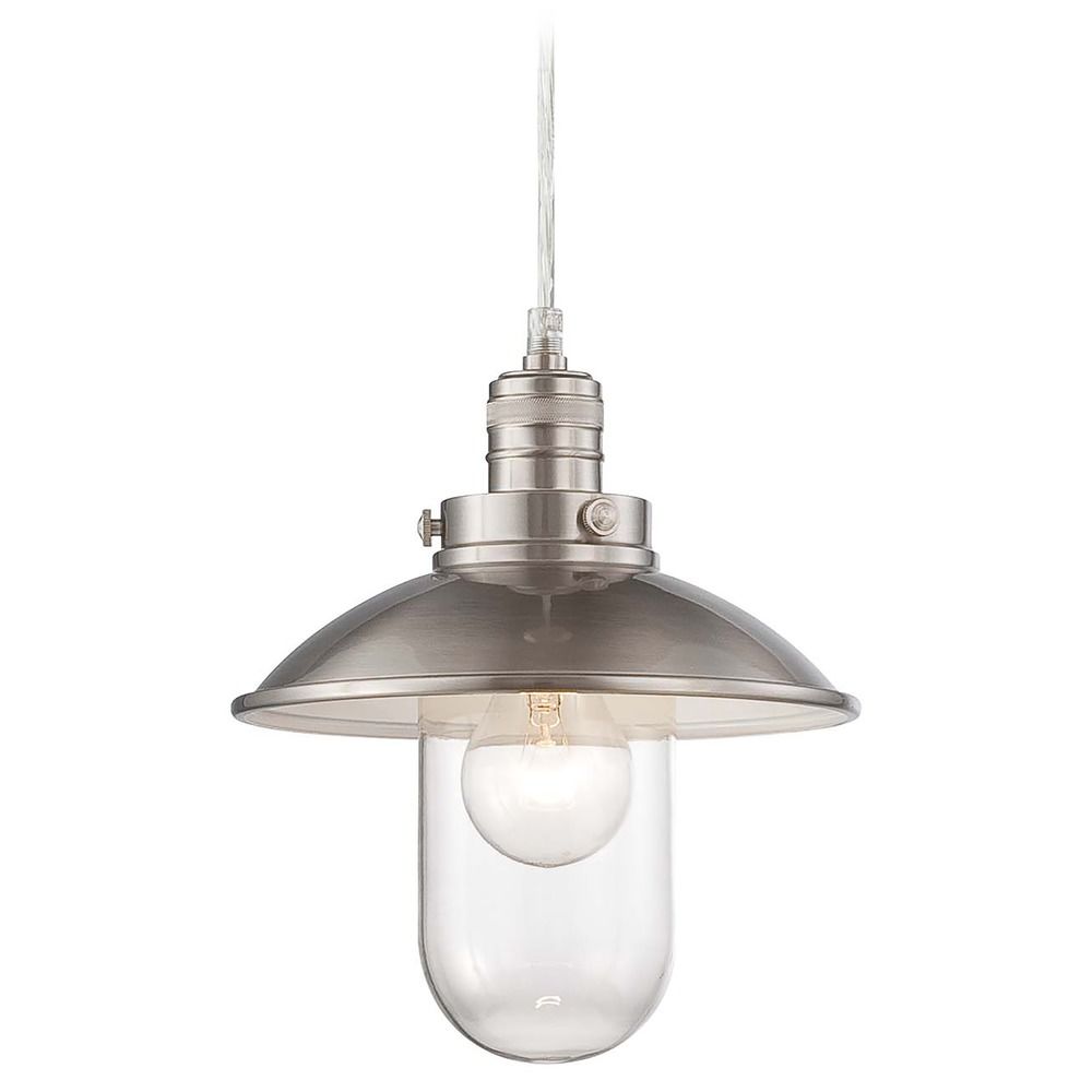 Transitional brushed nickel 1-light mini-pendant light with clear glass shade